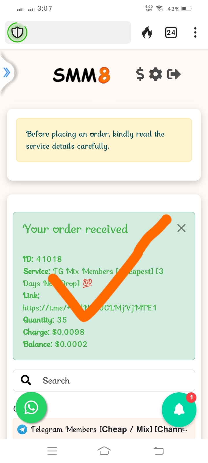 অ্যাকাউন্ট ক্রিয়েট করার পর আপনাকে 0.01$ এর মতো ব্যালান্স দিবে যা দিয়ে আপনি আনলিমিটেড TELEGRAM MEMBERS,REACTIONS,POST VIEWS নিতে পারবেন।