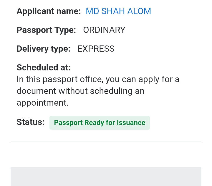 (গ) দেশের অভ্যন্তরে রেগুলার পাসপোর্ট প্রাপ্তির লক্ষ্যে আবেদনের সাথে পুলিশ ক্লিয়ারেন্স দাখিল করা হলে অন্যান্য সকল তথ্য সঠিক থাকা সাপেক্ষে ১৫ কর্মদিবসের মধ্যে পাসপোর্ট প্রদান করা হবে।