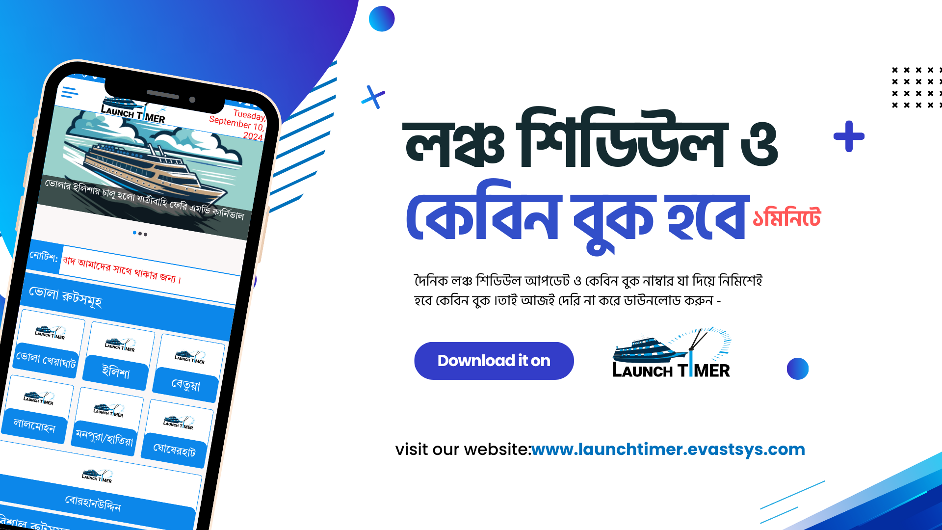 বিশেষ করে আমরা যারা দক্ষিণ অঞ্চলের মানুষ রয়েছি, তাদের একমাত্র যাতায়াত ব্যবস্থা হল লঞ্চ। আর এই লঞ্চ সেক্টরে রয়েছে কেবিন বুক ও সিট নিয়ে নানা দুর্ভোগ। আর এই দুর্ভোগ নিরাশ করার জন্য Evastsys একটি অনলাইন প্রতিষ্ঠান নিয়ে আসলো Launch Timer App. এই অ্যাপটি কিছুদিন আগে প্লেস্টোরে লঞ্চ করা হয়েছে , যা আমি নিজেই ব্যবহার করে দেখলাম এর ফিচারগুলো দারুন। যা কিছুটা হলো আমরা যারা লঞ্চ ভ্রমণ করি তাদের জন্য উপকারে আসবে।