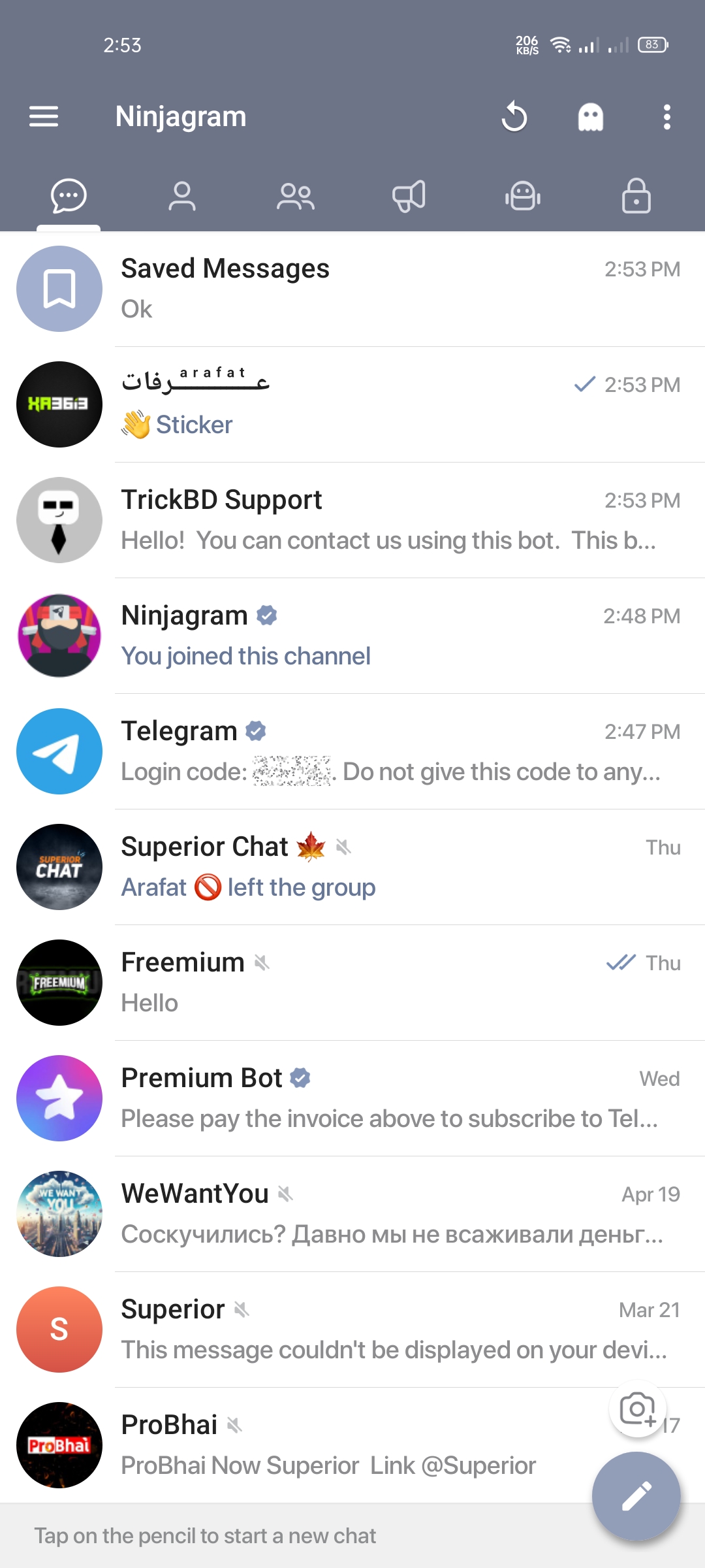 ⚠️ যদি একাউন্ট লগইন করতে সমস্যা হয় > প্রথমে অফিসিয়াল টেলিগ্রাম একাউন্ট টি লগইন করে রাখতে হবে তারপর ninjagram এ লগইন করতে হবে ।