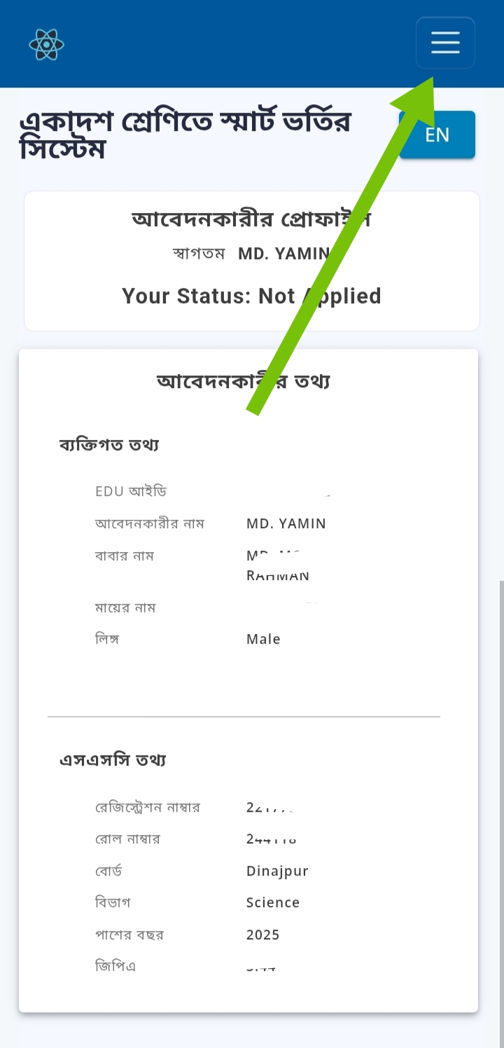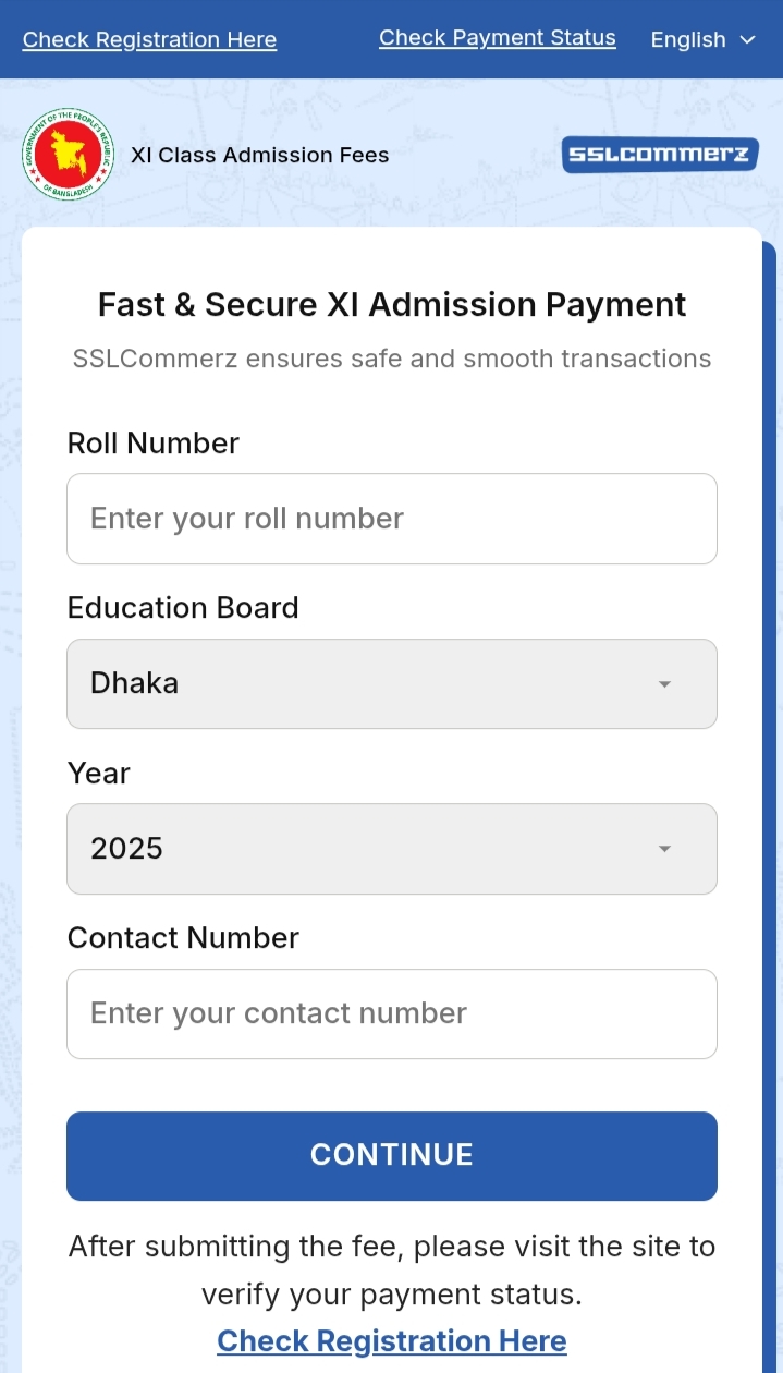 তার পর আপনার SSC রোল নম্বর, SSC পাসের শিক্ষা বোর্ড, SSC পাসের সাল, একটি ফোন নম্বর প্রদান করে continue বাটনে ক্লিক করুন