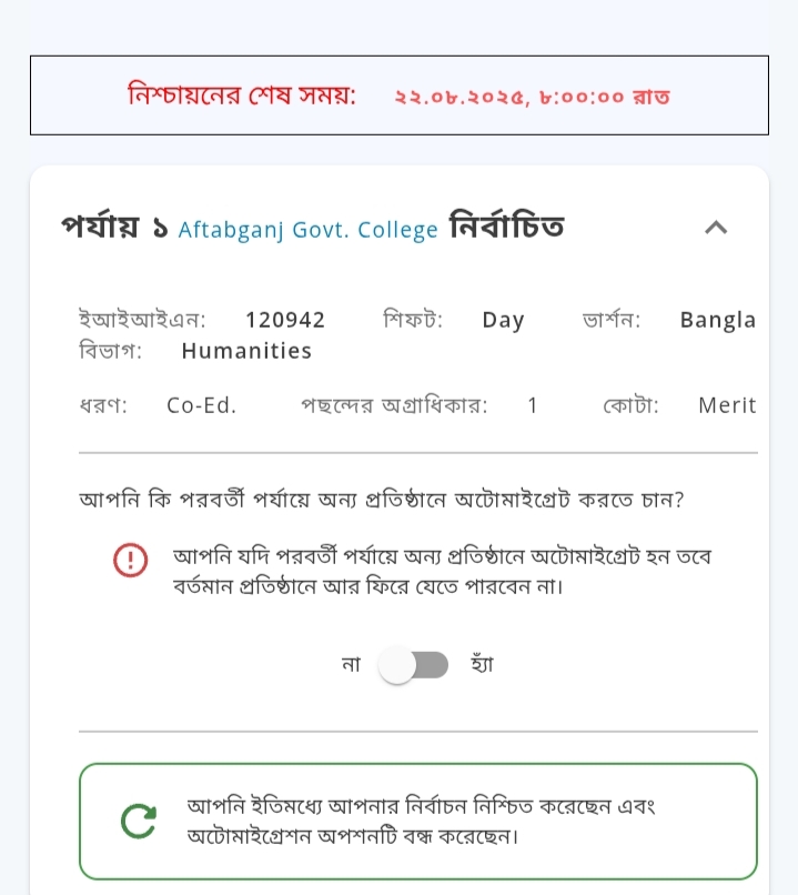 যারা ভর্তি মাইগ্রেশন করতে চান তাড়া মাইগ্রেশন অপশনটা চালু রাখবেন আর যারা মাইগ্রেশন করতে চান না তারা মাইগ্রেশন অপশন বন্ধ করে রাখবেন