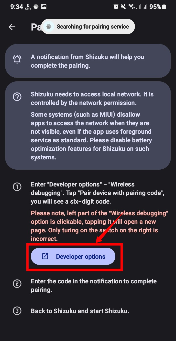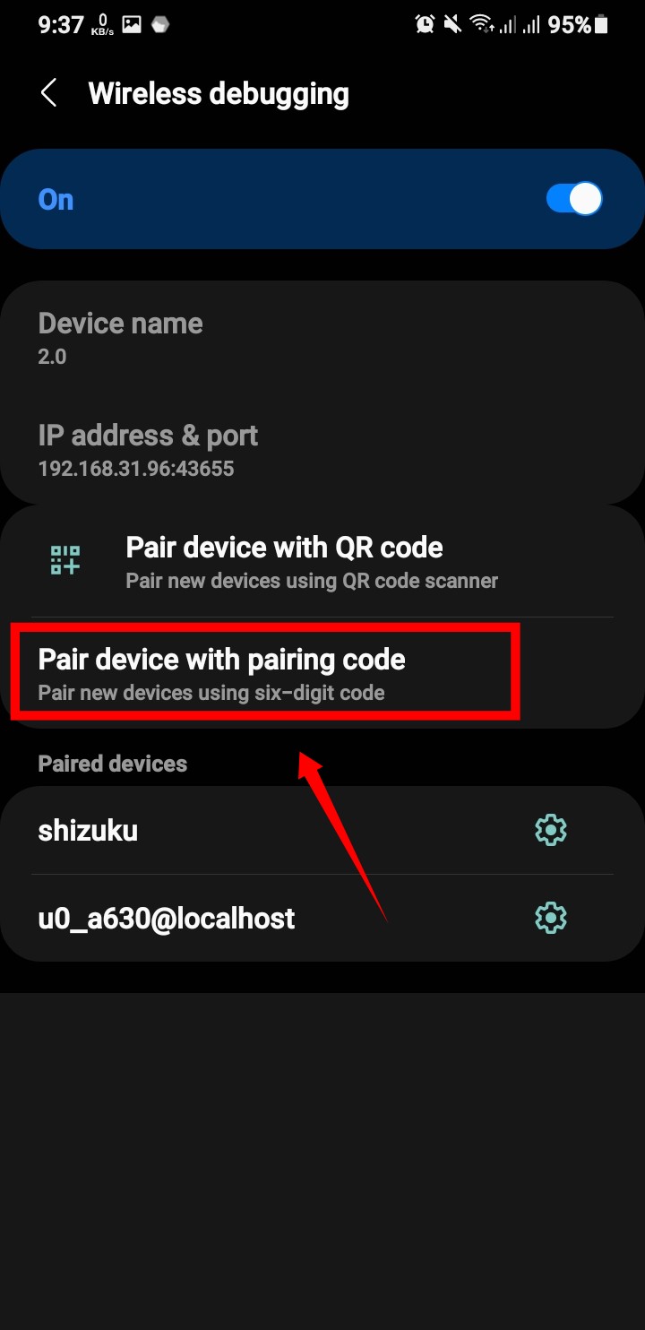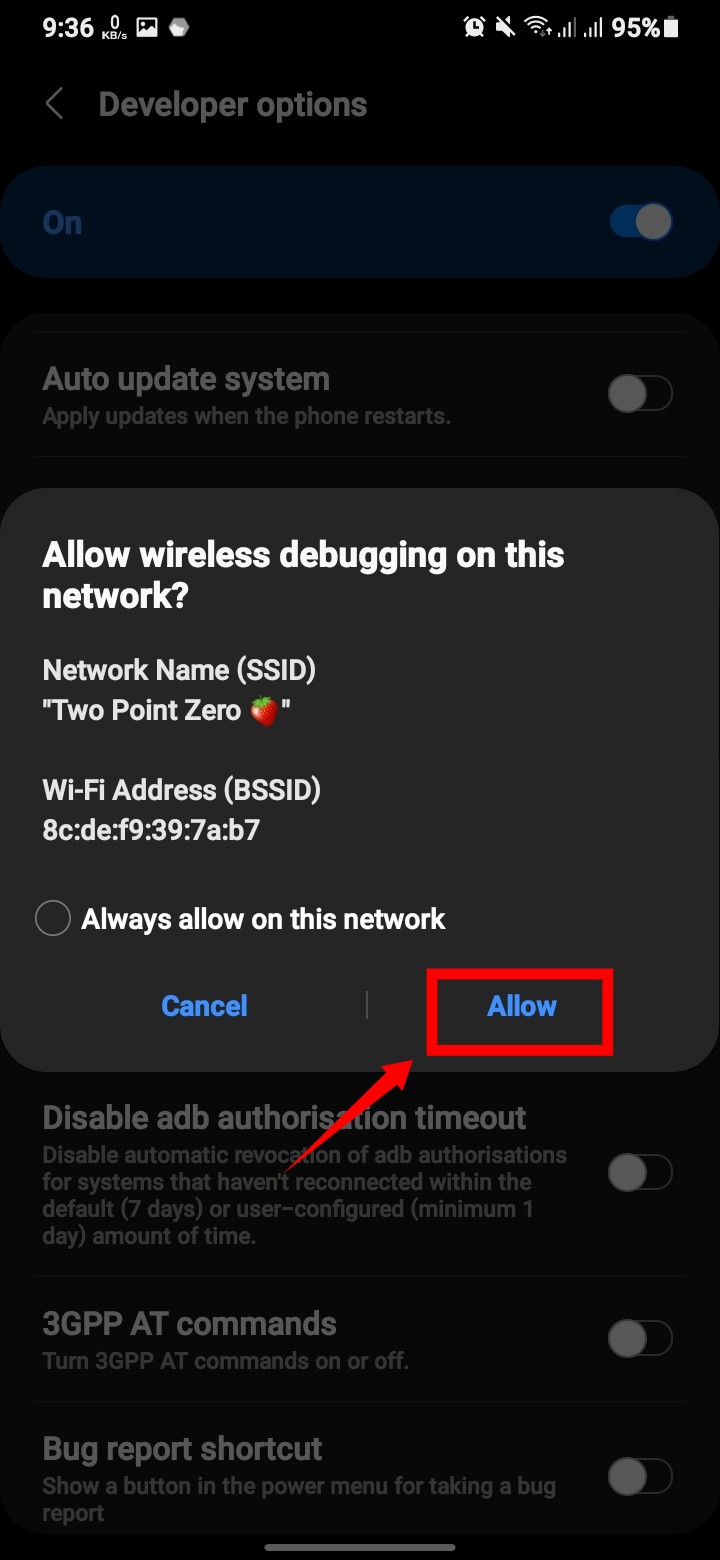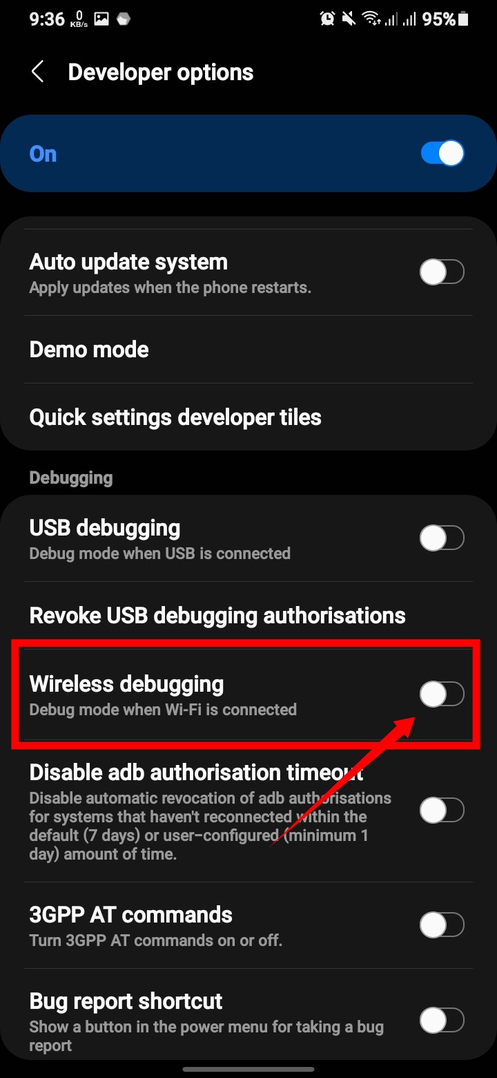 “Wireless Debugging” ক্লিক করে এলাও দিন।