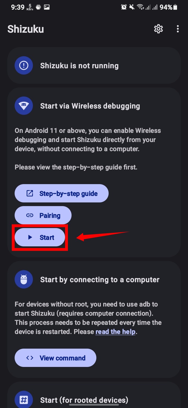 এখন Shizuku অ্যাপটি ওপেন করুন ।