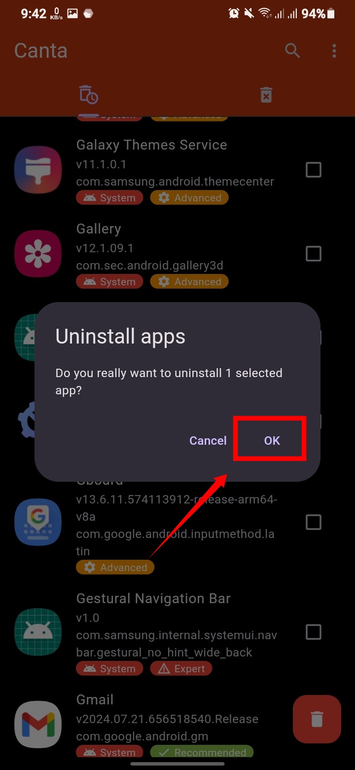 ⚠️ যে সিস্টেম অ্যাপসগুলোতে Unsafe, Advanced, Expert, …, লেখা আছে এগুলো ডিলেট করবেন না, এগুলো ডিলেট করলে ফোন ঠিকমতো নাও কাজ করতে পারে।