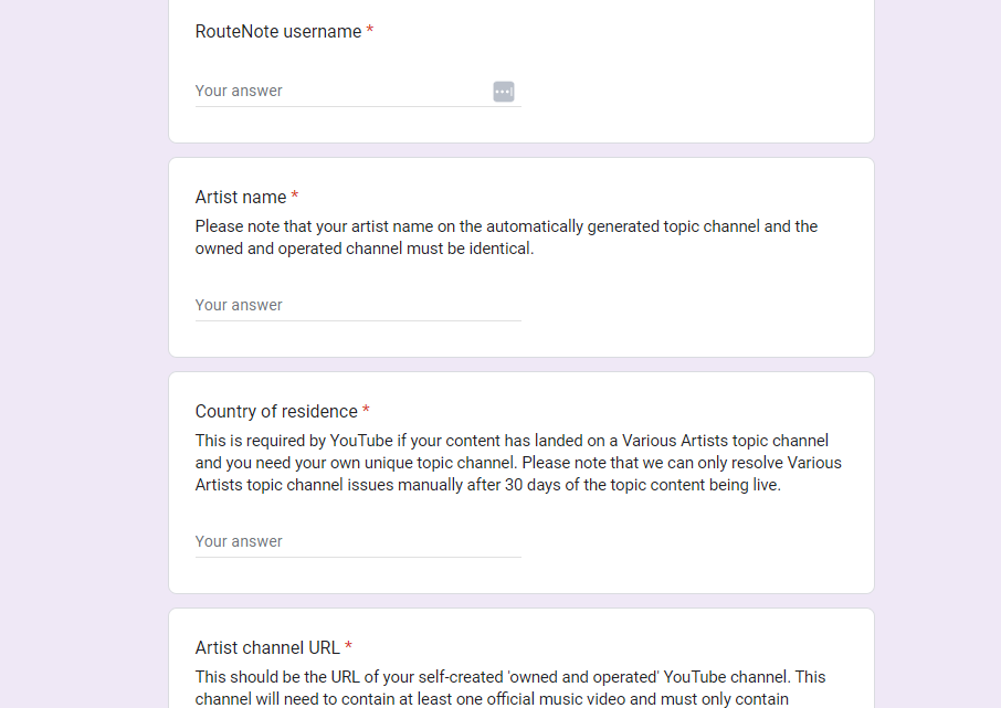 তারপরে routenote user and artist name দিবেন, তারপরে নিজের দেশের নাম আর চ্যানেল নাম আইডি দিবেন