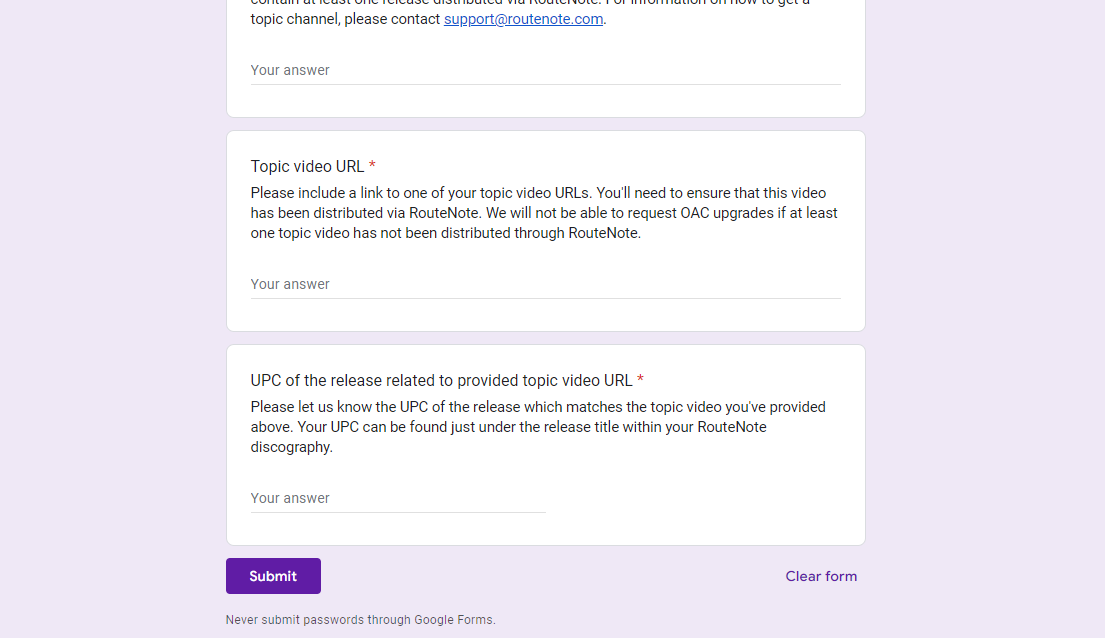 তারপরে মিউজিক আর টপিক চ্যানেল লিংক আর টপিক চ্যানেলের মিউজিক লিংক দিবেন পরে music upc কোড দিবেন