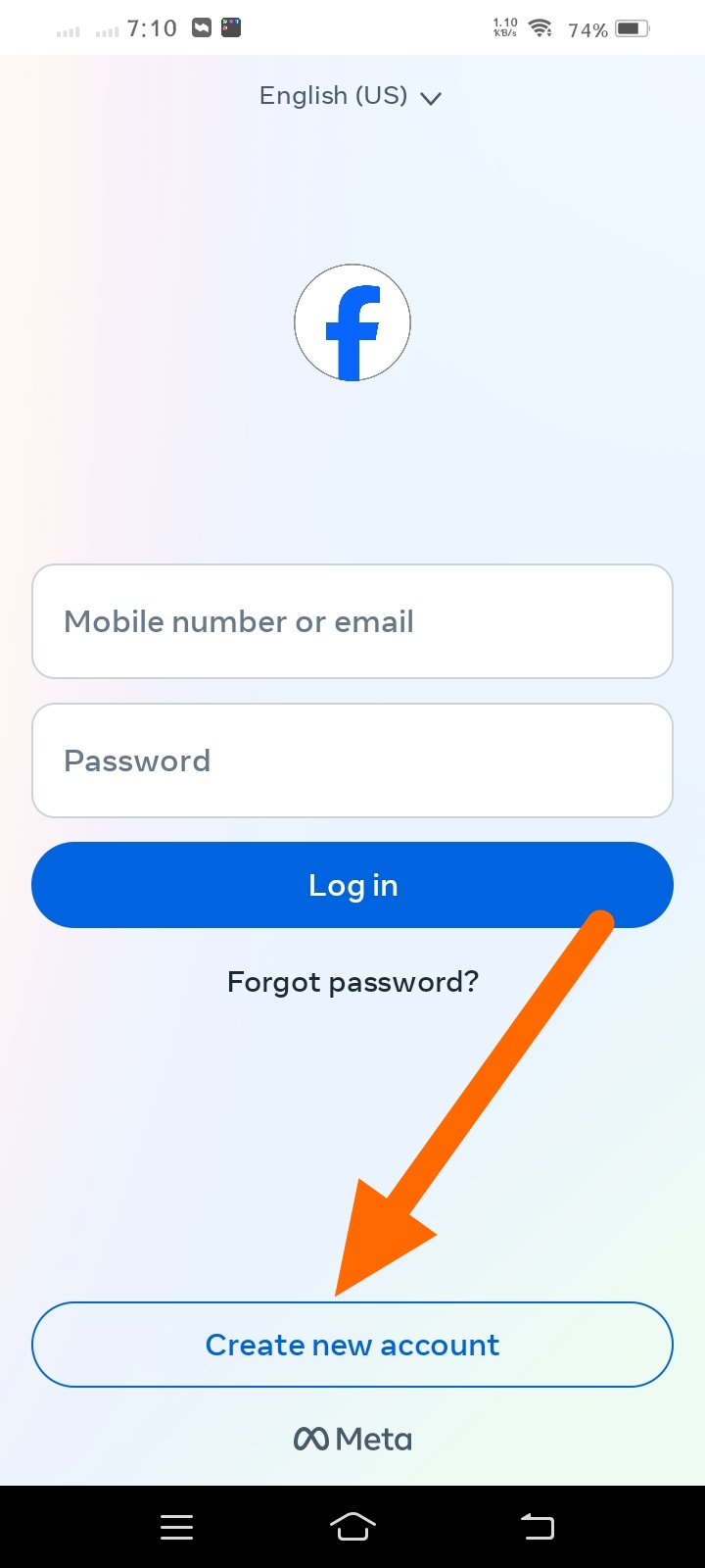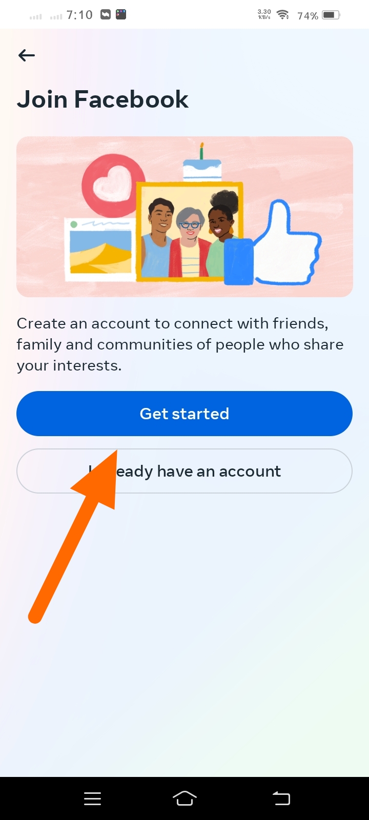 Multi Space থেকে Facebook অ্যাপটিকে ওপেন করে নিবেন এবং Create a Account এ ক্লিক করুন।