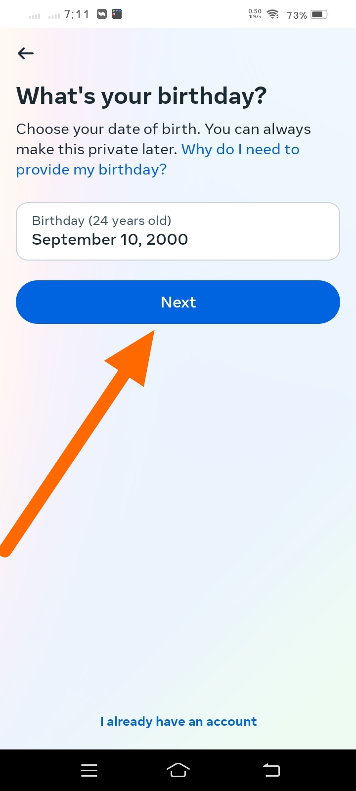 জন্ম তারিখ দিয়ে Next এ ক্লিক করুন।