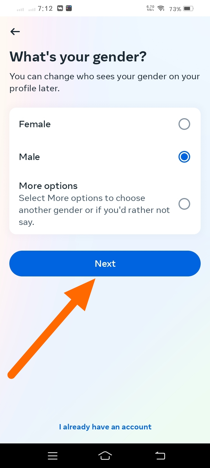 Gender সিলেক্ট করে Next ক্লিক করুন।