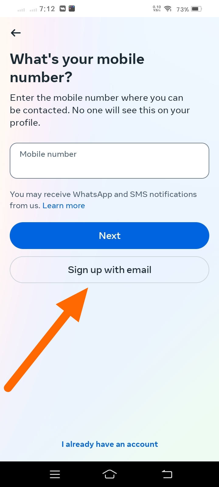 যেহেতু আমরা নাম্বার ছাড়াই টেম্প মেইল দিয়ে অ্যাকাউন্ট করব তাই sign up with email ক্লিক করব।