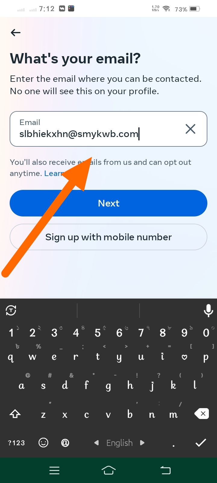 এখন টেম্প মেইল অ্যাপ থেকে মেইলটি কপি করে এখানে পেস্ট করে Next এ ক্লিক করুন।