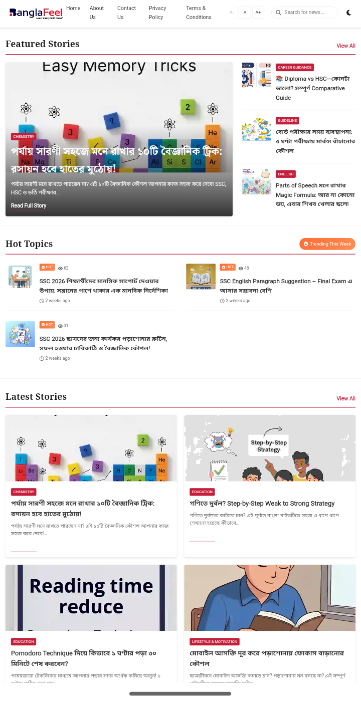 হোমপেজটি ব্লগিং-এর জন্য পারফেক্ট, এবং Google Discover-friendly।
