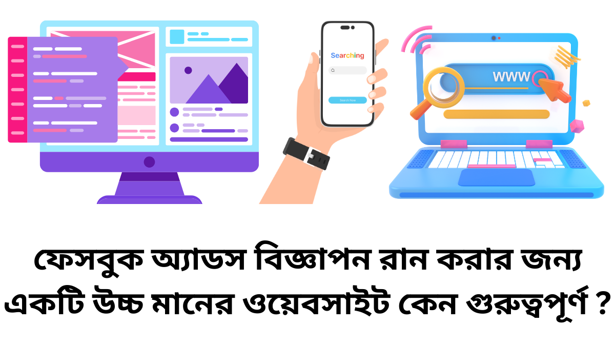 ফেসবুক অ্যাডস রান করার জন্য ওয়েবসাইট কেন গুরুত্বপূর্ণ? বর্তমানের ডিজিটাল মার্কেটিং যুগে ফেসবুক অ্যাডস একটি গুরুত্বপূর্ণ মার্কেটিং পদ্ধতি। তবে শুধুমাত্র ফেসবুক অ্যাড রান করা যথেষ্ট নয়, এর পাশাপাশি একটি প্রফেশনাল ওয়েবসাইটের উপস্থিতি অত্যন্ত জরুরি। এই আর্টিকেলে আমরা বিস্তারিতভাবে দেখব কিভাবে একটি ওয়েবসাইট আপনার ব্র্যান্ডের বিশ্বাসযোগ্যতা বৃদ্ধি করে, বিস্তারিত তথ্য প্রদানের সুযোগ তৈরি করে, লিড জেনারেশনে সাহায্য করে, SEO এর মাধ্যমে ট্রাফিক বাড়াতে সাহায্য করে, রিটার্গেটিং পদ্ধতিতে অভিজ্ঞতা তৈরি করে, ব্র্যান্ডিং এবং ভিজ্যুয়াল আইডেন্টিটি প্রকাশ করে এবং কাস্টমার সাপোর্ট এবং কন্টাক্ট সেবার মাধ্যমে কাস্টমারের সন্তুষ্টিকর অভিজ্ঞতা প্রদান করে।