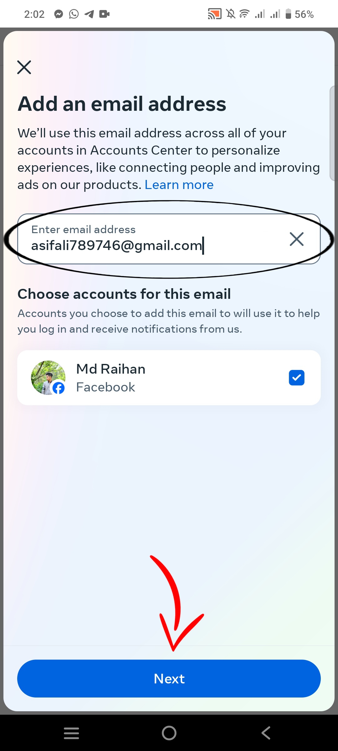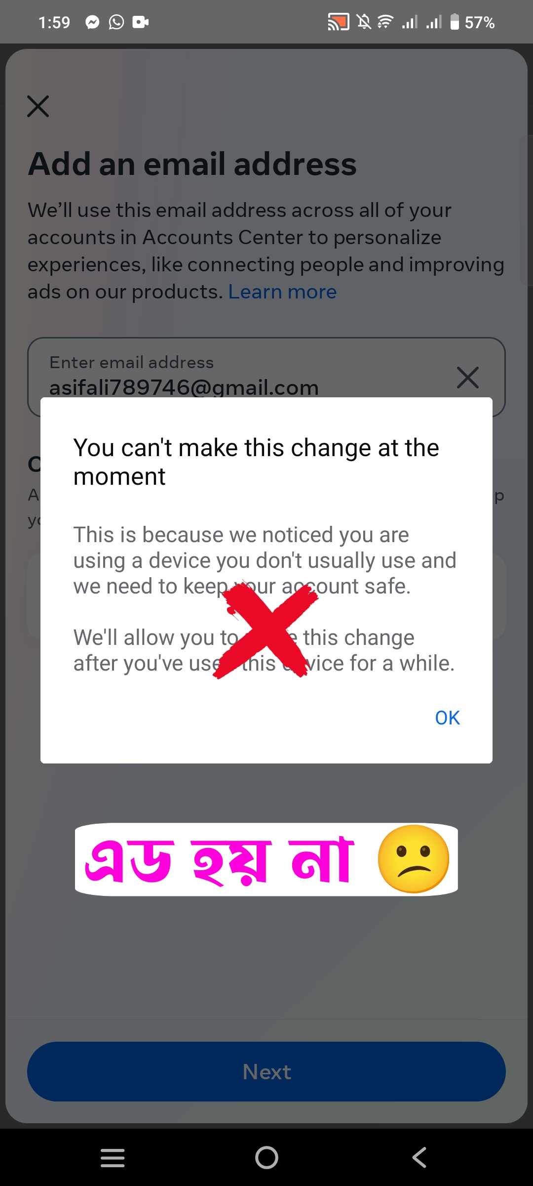 আজকের পোস্টের বিষয় হলো কিভাবে আপনারা ফেসবুক আইডিতে ইমেইল/নাম্বার এড করবেন। অনেক ই আছেন যারা কিনা বিভিন্ন উপায়ে চেষ্টা করছেন ফেসবুক আইডিতে ইমেইল/নাম্বার এড করার জন্য কিন্তু কোনভাবে ই হচ্ছে না। তাদের জন্য আজকের কার্যকরী ট্রিক। যারা জানেন তাদের জন্য এই পোস্ট না, সুতরাং কেউ বাজে মন্তব্য থেকে বিরত থাকবেন। আজকের ট্রিক্সের বেনিফিট আজকের পোস্টের মাধ্যমে আপনারা খুব সহজে যেকোন ফেসবুক একাউন্টে অনায়েসে নাম্বার/ইমেইল এড করতে পারবেন। আপডেট ট্রিক ১৩ আগস্ট ২০২৪। তো চলুন শুরু করা যাক…১. প্রথমে দেখতে পাচ্ছেন আইডিতে ইমেইল এড করার জন্য Next তে ক্লিক করবো।