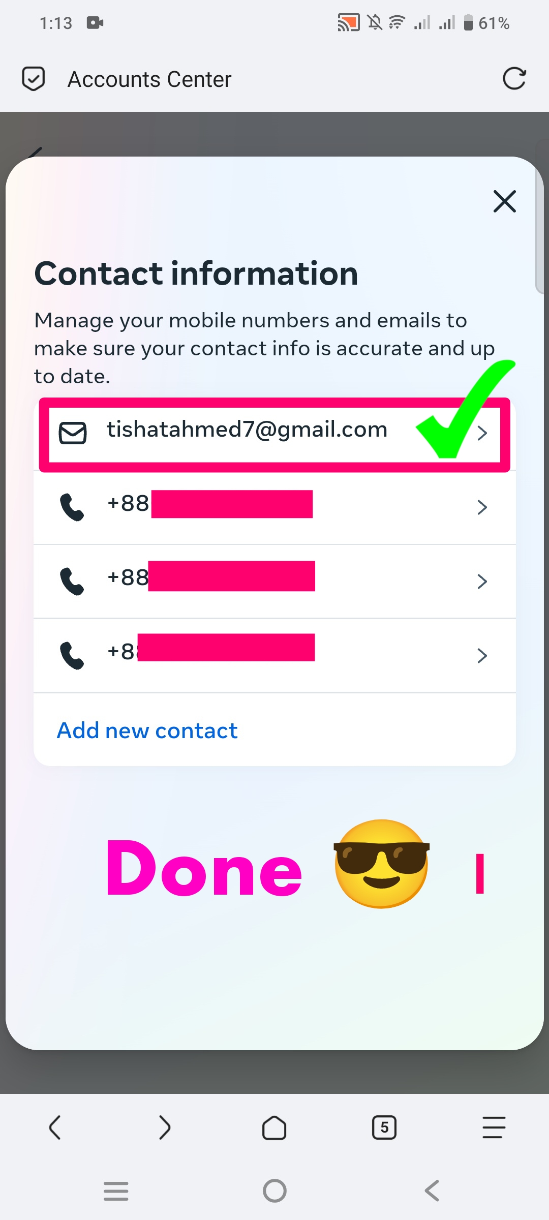 ৮. তারপর দেখুন ফেসবুক আইডিতে মেইল এড হয়ে গিয়েছে 💜🥰✅।