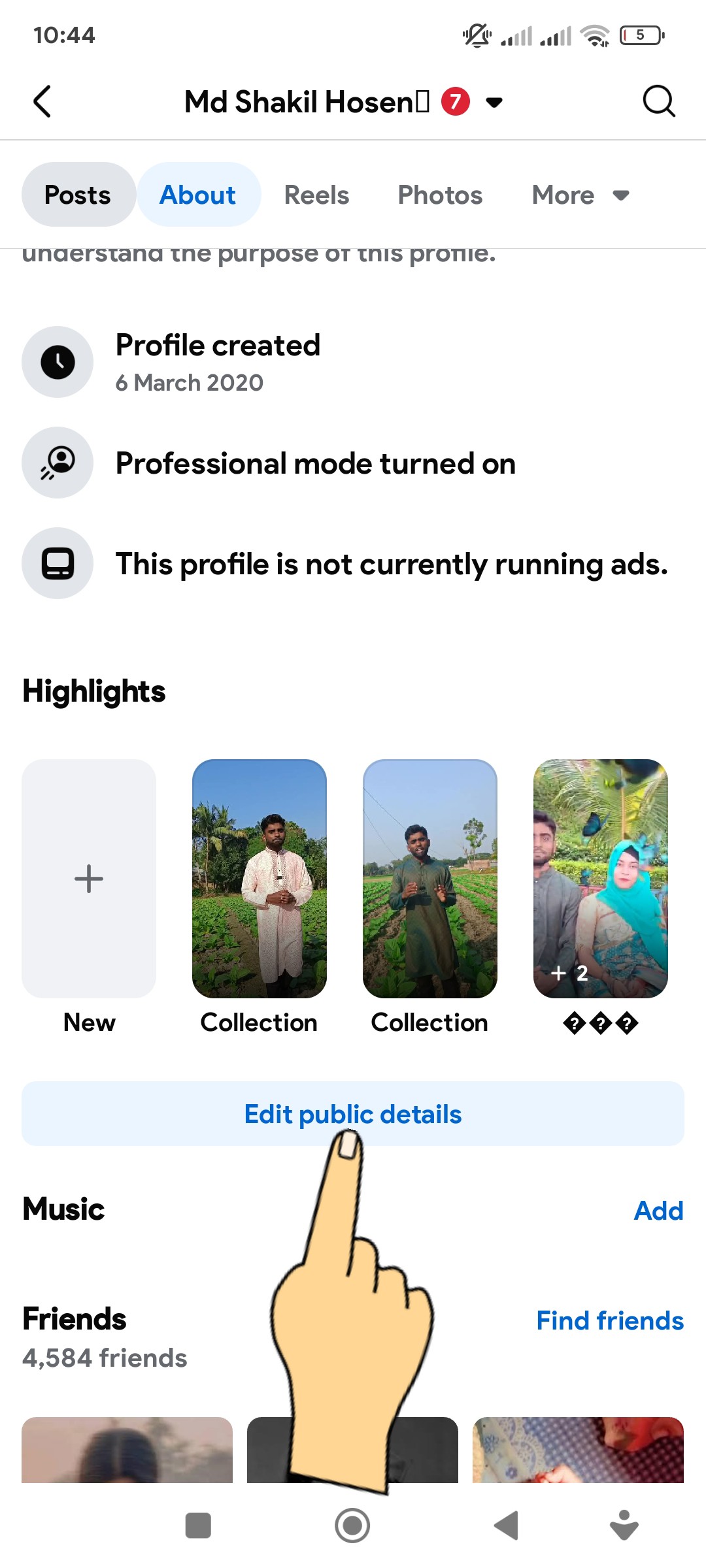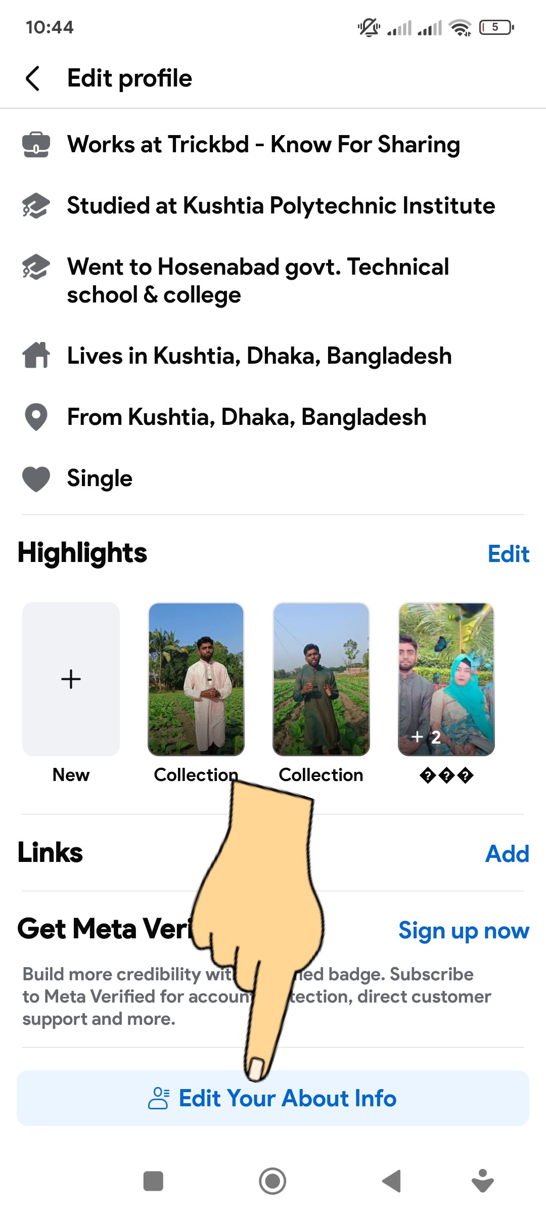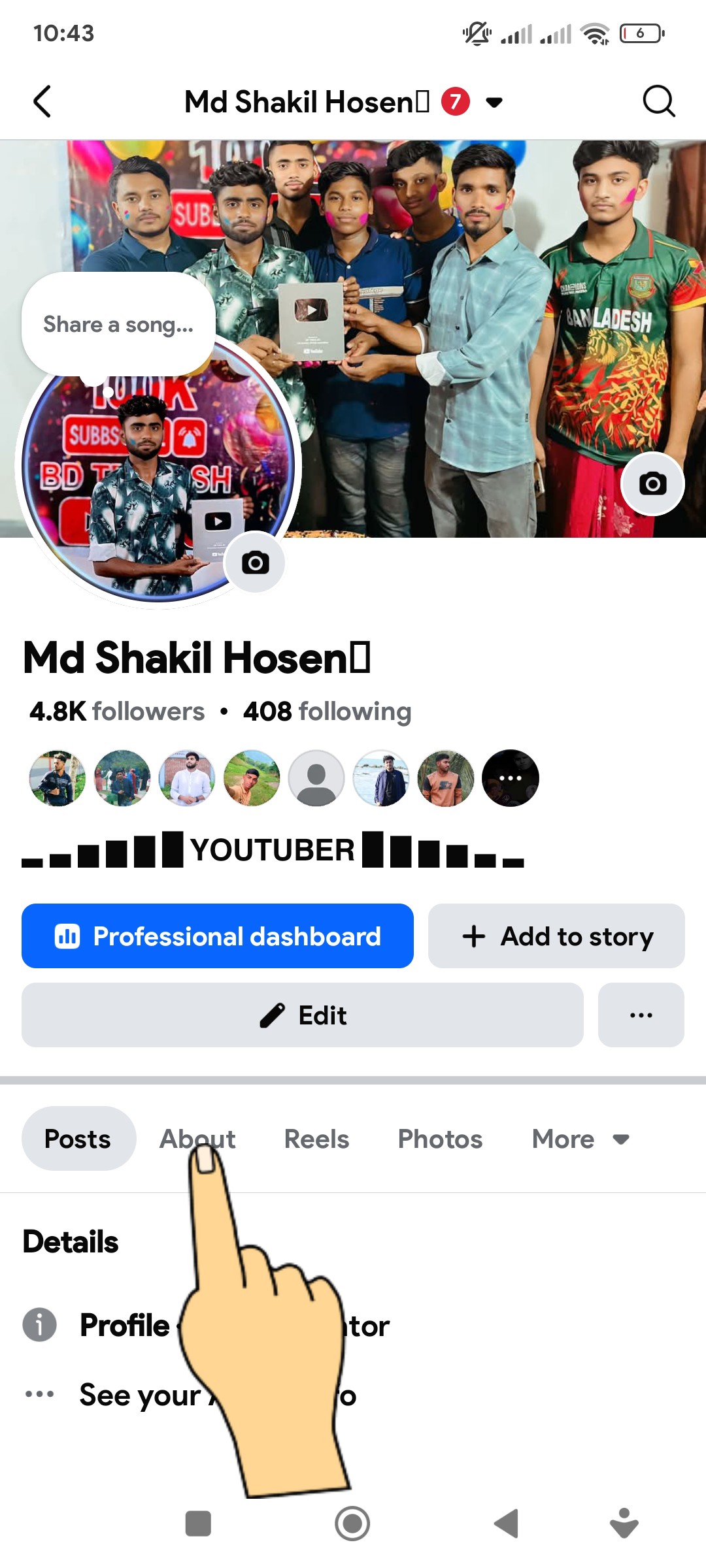 শুরুতে যেকোনো ফেসবুক অ্যাপের মাধ্যমে ফেসবুক প্রোফাইলে এসে About অফশনে ক্লিক করুন।