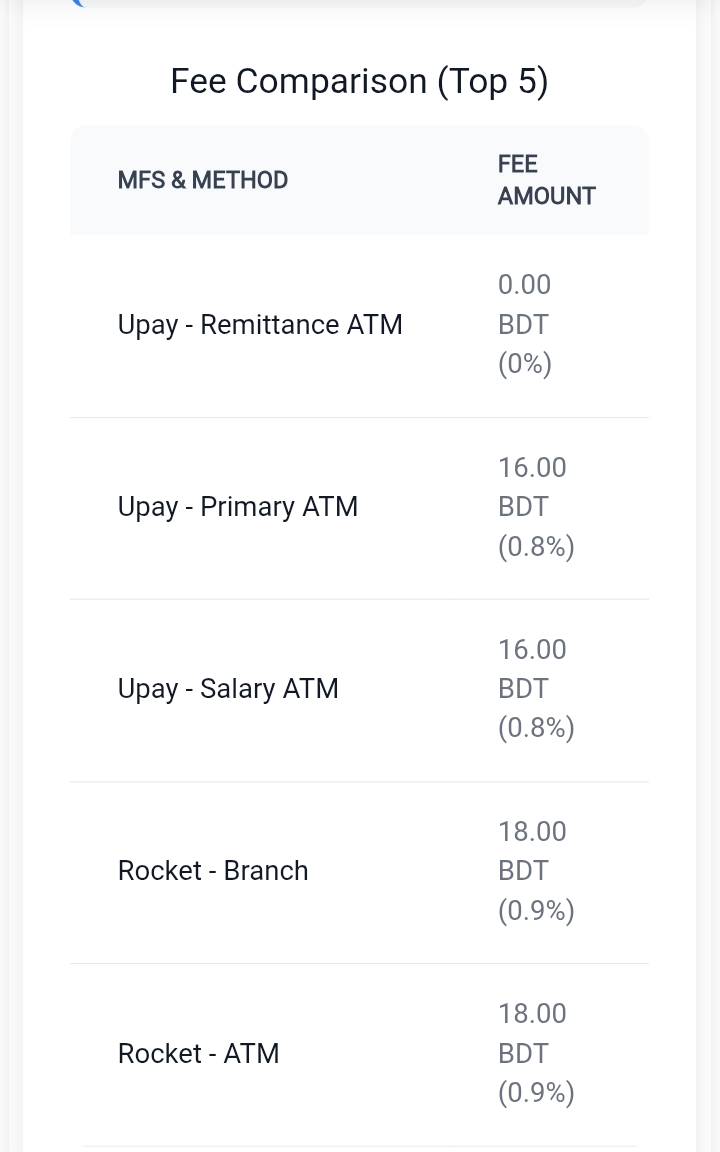 - ✓✓ তুলনামুলক ফি চার্ট দেখত পারবেন।