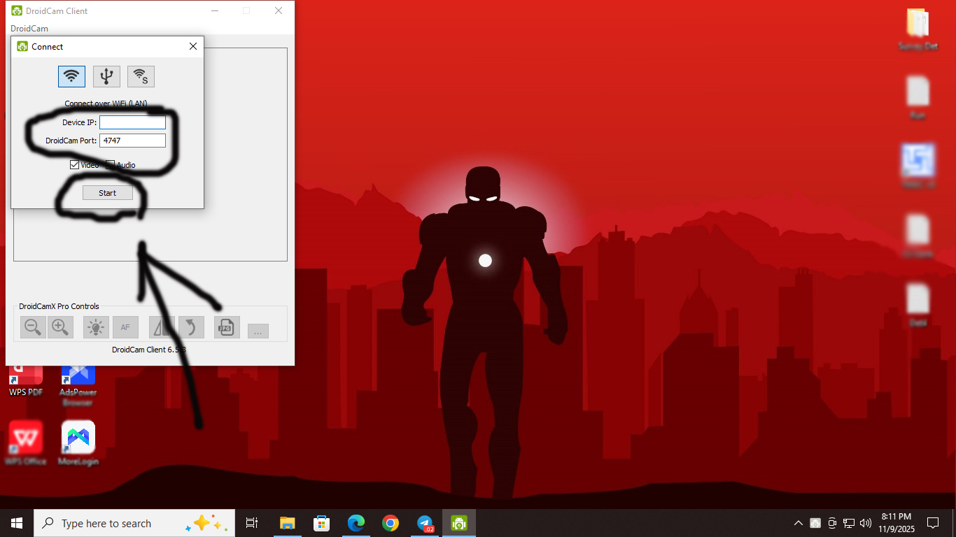 এখন Computer এ Droidcam software টি open করবেন তারপরে mobile এর app এ যে device ip এবং Port copy করে ছিলেন সেটা। দেওয়ার পর start button এ Click করলেই আপনার phone কে pc webcam হিসেবে ব্যবহার করতে পারবেন।
