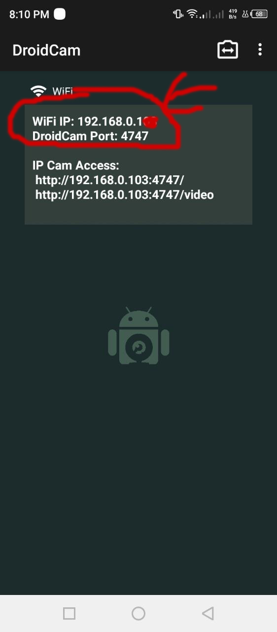 এখন আপনার mobile এর DroidCam-Webcam for Pc সফটওয়্যার Open করবেন।তাহলে Device ip এবং Port নাম্বার দেখতে পাবেন সেটা copy করে নিবেন।