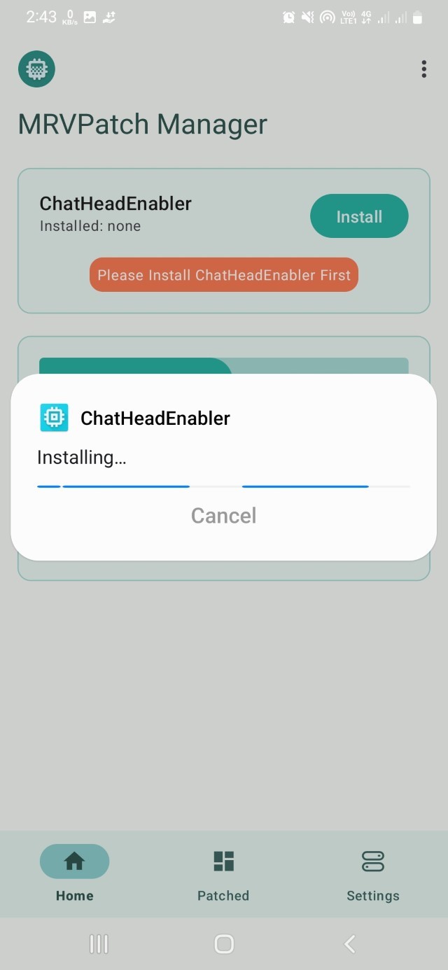 – MRVPatchManager অ্যাপটি ইন্সটল করে Chat Head Enabler ইনস্টল করুন।