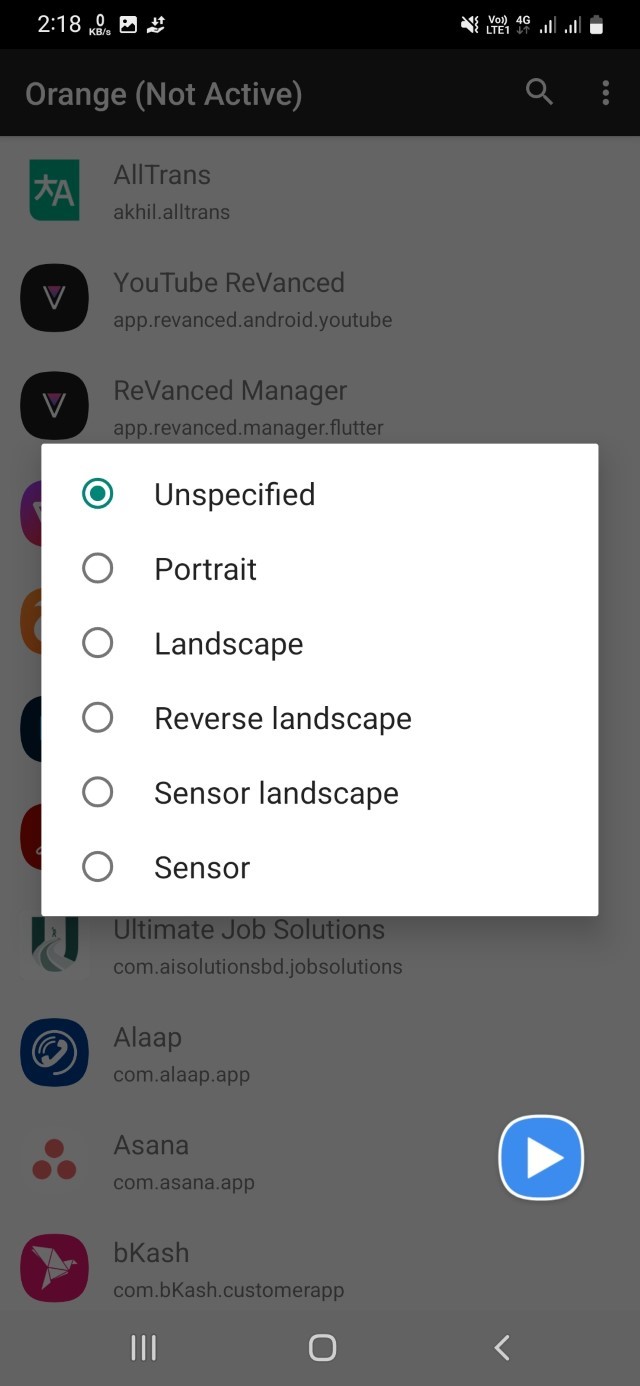 অনেক সময় আমরা স্ক্রিন ল্যান্ডস্কেপ মুডে দেখতে পছন্দ করি, কিন্তু সব অ্যাপে ফোনের ডিফল্ট রোটেশন ফিচার ঠিকভাবে কাজ করে না। Orange অ্যাপের মাধ্যমে আপনি ইচ্ছামতো যেকোনো অ্যাপের স্ক্রিন অরিয়েন্টেশন সেট করতে পারবেন।