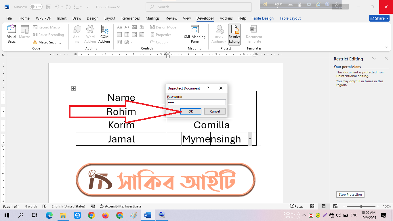 āϤāĻžāϰāĻĒāϰ Unprotect Document āĻĄāĻžā§āĻžāϞāĻ āĻŦāĻžāĻā§āϏ āĻāϏāĻŦā§ āĻāĻāĻžāύ⧠āĻāĻā§āϰ Password āĻāĻŋ āĻĻāĻŋā§ā§ āĻāĻā§ āĻāϰā§āύāĨ¤