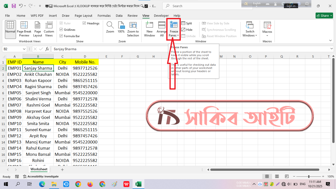 āϤāĻžāϰāĻĒāϰ Freeze Panes āĻ āĻ•ā§āϞāĻŋāĻ• āĻ•āϰ⧁āύāĨ¤