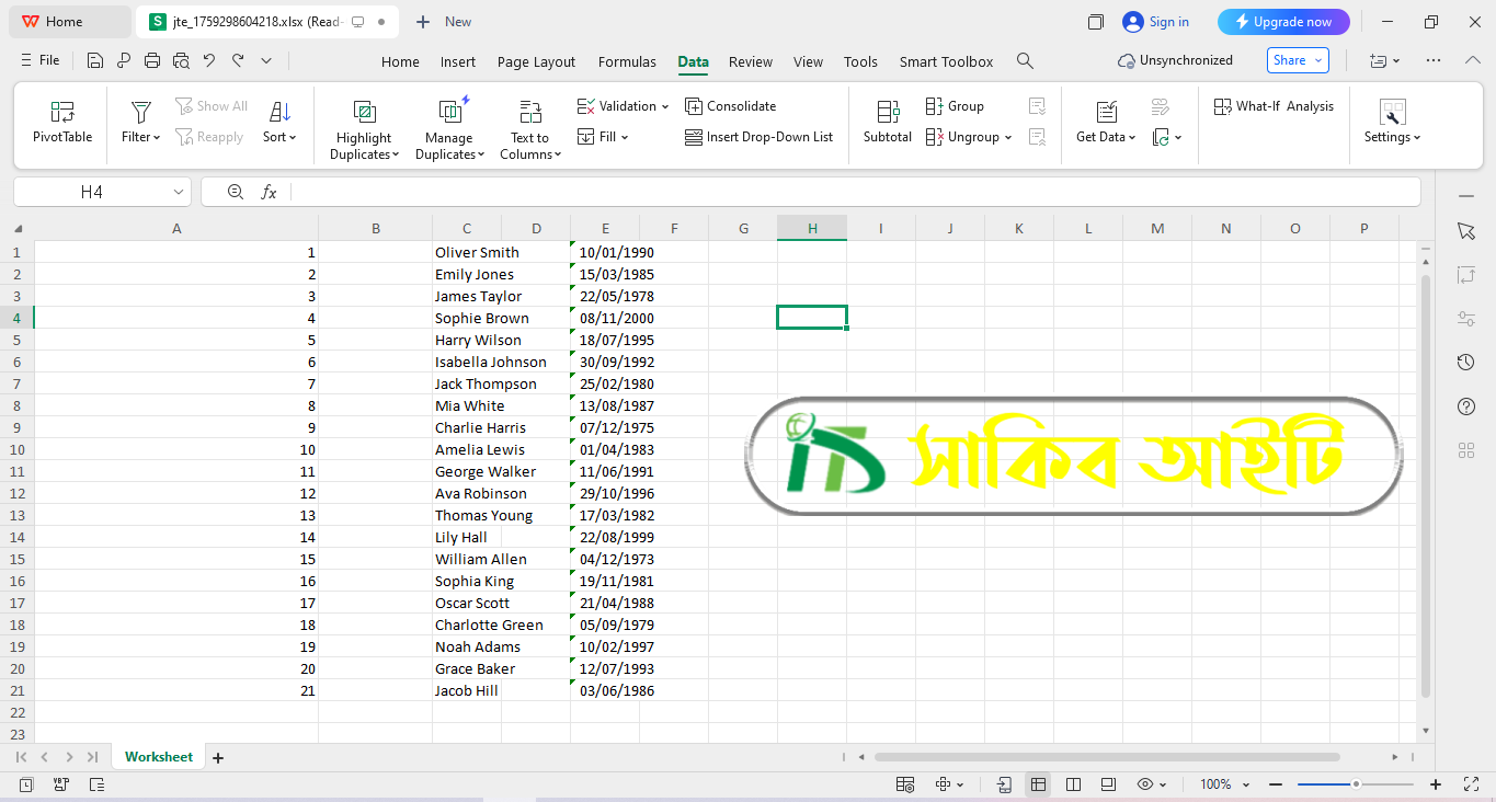 āĻāĻĒāύāĻŋ āϝāĻĻāĻŋ Microsoft Excel āĻ WPS Office-āĻ āĻĄā§āĻāĻžāĻā§ āĻāϰāĻ āĻā§āĻāĻžāϞ⧠āĻ āĻŦā§āϝāĻŦāĻšāĻžāϰ āĻāĻĒāϝā§āĻā§ āĻāϰāϤ⧠āĻāĻžāύ, āϤāĻŦā§ Serial Number, Name āĻāĻŦāĻ Date āĻāϞāĻžāĻĻāĻž āĻāϰāĻžāϰ āĻāĻ āĻā§āĻļāϞāĻā§āϞ⧠āĻŦā§āϝāĻŦāĻšāĻžāϰ āĻāϰ⧠āĻĻā§āĻāϤ⧠āĻĒāĻžāϰā§āύāĨ¤ āĻāϤ⧠āϏāĻŽā§ āĻŦāĻžāĻāĻāĻŦā§ āĻāĻŦāĻ āĻĄā§āĻāĻž āĻŽā§āϝāĻžāύā§āĻāĻŽā§āύā§āĻ āĻšāĻŦā§ āĻ āύā§āĻ āϏāĻšāĻāĨ¤