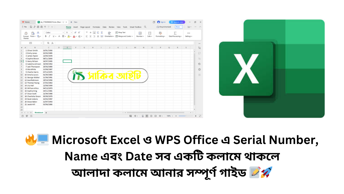 đĨđĨī¸ Microsoft Excel āĻ WPS Office āĻ Serial Number, Name āĻāĻŦāĻ Date āϏāĻŦ āĻāĻāĻāĻŋ āĻāϞāĻžāĻŽā§ āĻĨāĻžāĻāϞ⧠āĻāϞāĻžāĻĻāĻž āĻāϞāĻžāĻŽā§ āĻāύāĻžāϰ āϏāĻŽā§āĻĒā§āϰā§āĻŖ āĻāĻžāĻāĻĄ đđ