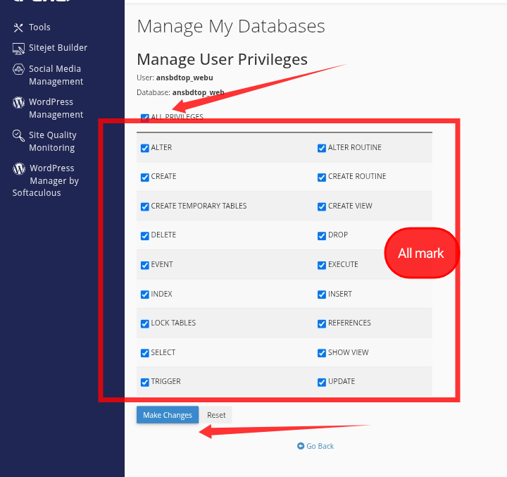 āϤāĻžāϰāĻĒāϰ āϏāĻĻā§āϝ āϤā§āϰāĻŋ āĻĄāĻžāĻāĻžāĻŦā§āĻ āĻ āĻāĻāĻāĻžāϰ āĻā§ āĻāĻžāύā§āĻā§āĻ āĻāϰā§āύ, connect āĻāϰāĻžāϰ āϏāĻŽāϝāĻŧ āĻ āĻŦāĻļā§āϝāĻ All privileges mark āĻāϰ⧠āĻĻāĻŋāĻŦā§āύāĨ¤ āĻ āĻŋāĻ āύāĻŋāĻā§āϰ āĻŽāϤā§