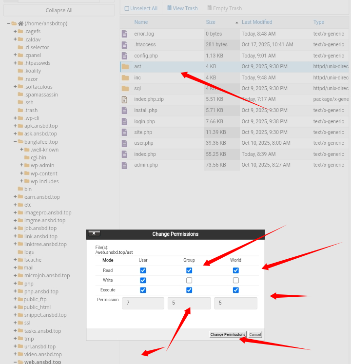 āĻāĻŦāĻ āĻāĻāύ āϝāϤ⧠āĻĢā§āϞā§āĻĄāĻžāϰ āĻāĻā§ āϏāĻŦ āĻā§āϞā§āϰ permission 755 āĻāϰ⧠āĻĻāĻŋāύāĨ¤