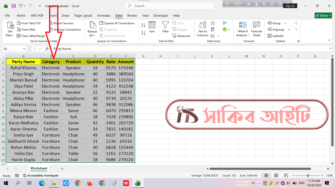 Microsoft Excel-āĻ āĻāĻŽāϰāĻž āϝāĻāύ āĻŦā§ āĻĄāĻžāĻāĻž āĻļāĻŋāĻ āύāĻŋā§ā§ āĻāĻžāĻ āĻāϰāĻŋ, āϤāĻāύ āĻāĻāĻžāϧāĻŋāĻ āĻā§āϝāĻžāĻāĻžāĻāϰāĻŋāϤ⧠āĻŦāĻŋāĻāĻā§āϤ āĻĄāĻžāĻāĻžāĻā§āϞā§āĻā§ āĻāϞāĻžāĻĻāĻž āĻāϰ⧠āĻŦāĻŋāĻļā§āϞā§āώāĻŖ āĻŦāĻž āĻā§āĻāĻžāϞ āĻŦā§āϰ āĻāϰāĻž āĻ āύā§āĻ āϏāĻŽā§ āĻāώā§āĻāϏāĻžāϧā§āϝ āĻŽāύ⧠āĻšā§āĨ¤ āϝā§āĻŽāύ āĻāĻŽāĻžāĻĻā§āϰ āĻĒā§āϏā§āĻā§ āϝ⧠Sheet āĻŦā§āϝāĻŦāĻšāĻžāϰ āĻāϰāĻž āĻšā§ā§āĻā§ āϤāĻž âCategoryâ āĻāϞāĻžāĻŽā§ Fashion, Electronic, Furniture āĻāĻ āϤāĻŋāύāĻāĻŋ āĻā§āϝāĻžāĻāĻžāĻāϰāĻŋ āϰā§ā§āĻā§ āĻāĻŦāĻ āĻĒā§āϰāϤāĻŋāĻāĻŋ āĻā§āϝāĻžāĻāĻžāĻāϰāĻŋāϤ⧠āĻāĻāĻžāϧāĻŋāĻ āĻĒā§āϰā§āĻĄāĻžāĻā§āĻ āĻ āĻĒāĻžāϰā§āĻāĻŋāϰ āύāĻžāĻŽ āĻĻā§āĻā§āĻž āĻāĻā§āĨ¤