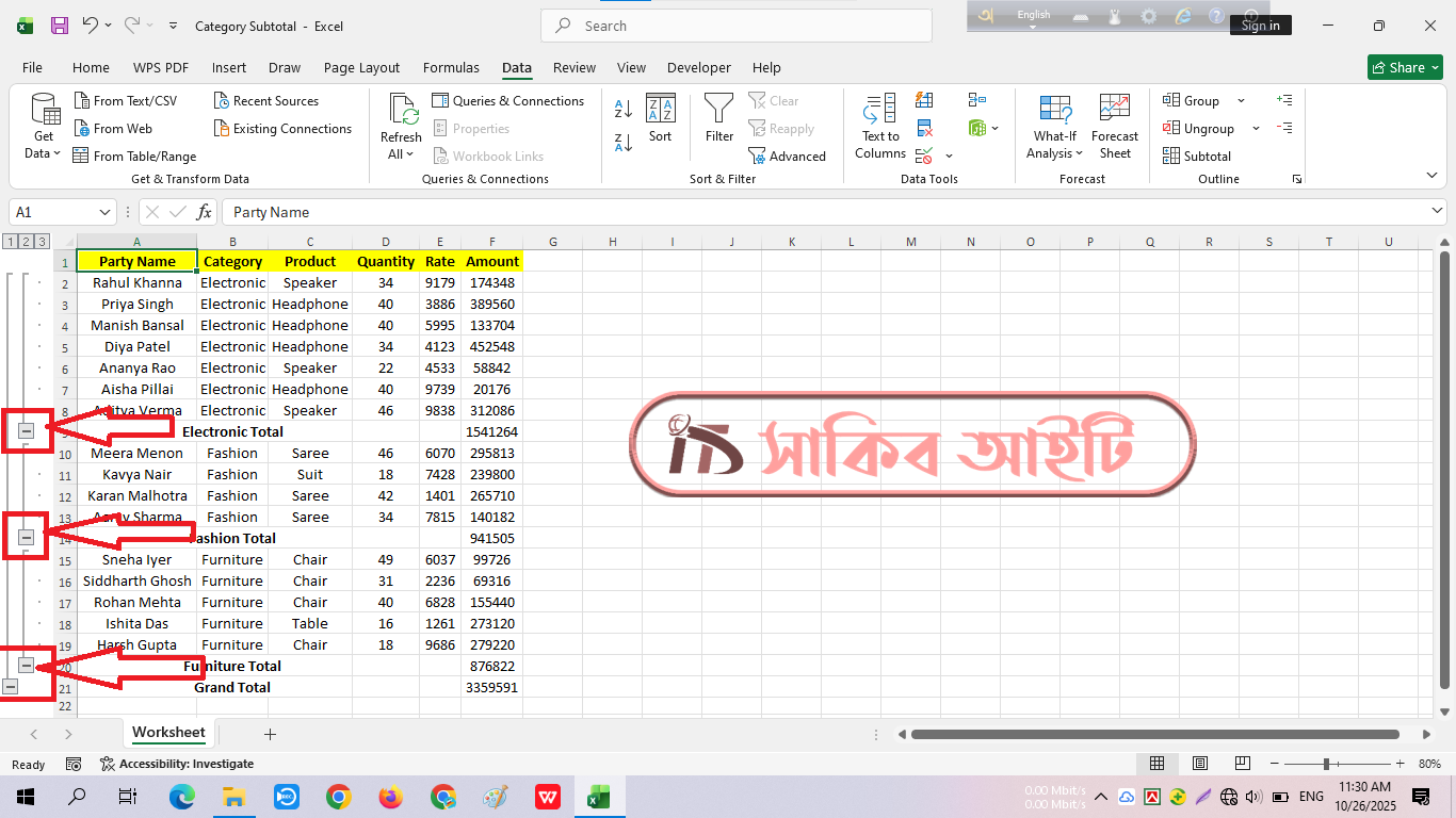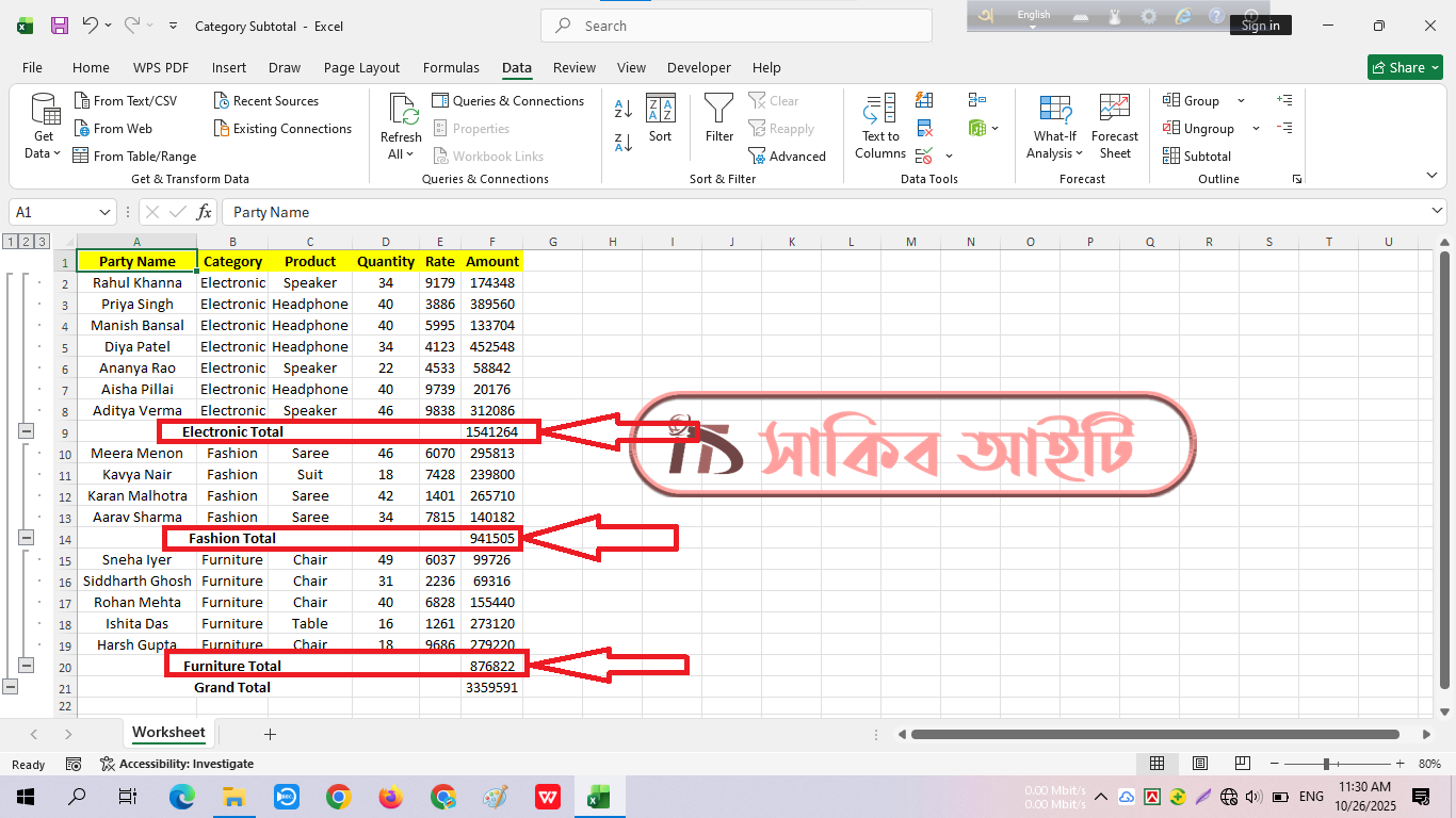 āĻāĻāĻāĻžāĻŦā§ āĻāĻĒāύāĻŋ āĻā§āĻŦ āϏāĻšāĻā§āĻ Excel-āĻāϰ Subtotal āĻĢāĻŋāĻāĻžāϰ āĻŦā§āϝāĻŦāĻšāĻžāϰ āĻāϰ⧠āϝā§āĻā§āύ⧠āĻŦā§ āĻĄāĻžāĻāĻžāϏā§āĻ āĻĨā§āĻā§ Category āĻ āύā§āϝāĻžā§ā§ āĻŽā§āĻ āĻā§āĻāĻžāϞ āĻŦā§āϰ āĻāϰāϤ⧠āĻĒāĻžāϰā§āύāĨ¤ āĻāϤ⧠āϏāĻŽā§ āĻŦāĻžāĻāĻā§, āĻā§āϞ āĻāĻŽā§, āĻāĻŦāĻ āϰāĻŋāĻĒā§āϰā§āĻ āϤā§āϰāĻŋ āĻāϰāĻž āĻāϰāĻ āĻĻā§āϰā§āϤ āĻšā§āĨ¤ āϤāĻžāĻ āĻĒāϰā§āϰ āĻŦāĻžāϰ āϝāĻāύ āĻāĻŽāύ āĻĄāĻžāĻāĻž āύāĻŋā§ā§ āĻāĻžāĻ āĻāϰāĻŦā§āύ, āĻŽāύ⧠āϰāĻžāĻāĻŦā§āύ āĻāĻ āĻā§āϞāĻŋāĻā§ Subtotal āĻāĻĒāύāĻžāϰ āϏā§āϰāĻž āϏāĻšāĻāĻžāϰā§â