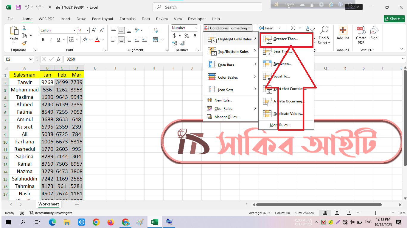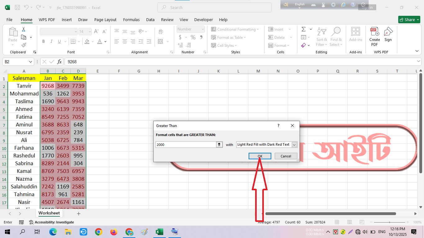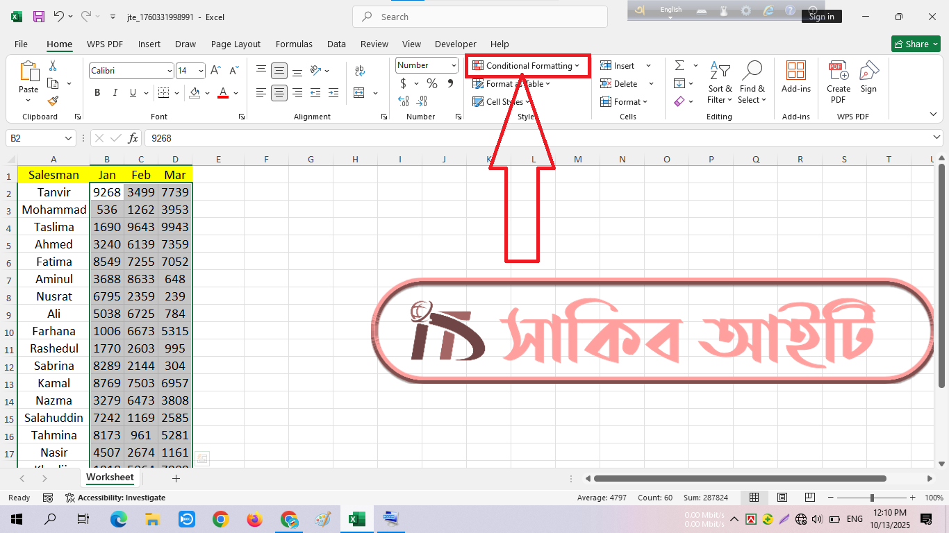 āĻāĻāĻžāύ⧠āĻāĻŽāϰāĻž āĻāĻžāĻ, Jan, Feb, Mar āĻāϞāĻžāĻŽā§āϰ āϝā§āϏāĻŦ āϏāĻāĻā§āϝāĻžāĻā§āϞ⧠⧍ā§Ļā§Ļā§Ļ āĻāϰ āĻŦā§āĻļāĻŋ, āϏā§āĻā§āϞ⧠āĻāϞāĻžāĻĻāĻž āĻāϰ⧠āĻšāĻžāĻāϞāĻžāĻāĻ āĻšā§āĻāĨ¤ āϤāĻžāĻ āĻāĻĒāϰā§āϰ Ribbon āĻĨā§āĻā§ Home Tab-āĻ āĻā§āϞāĻŋāĻ āĻāϰā§āύāĨ¤ āĻāϰāĻĒāϰ Conditional Formatting āĻ āĻĒāĻļāύāĻāĻŋ āĻā§āϞāĻŋāĻ āĻāϰā§āύāĨ¤