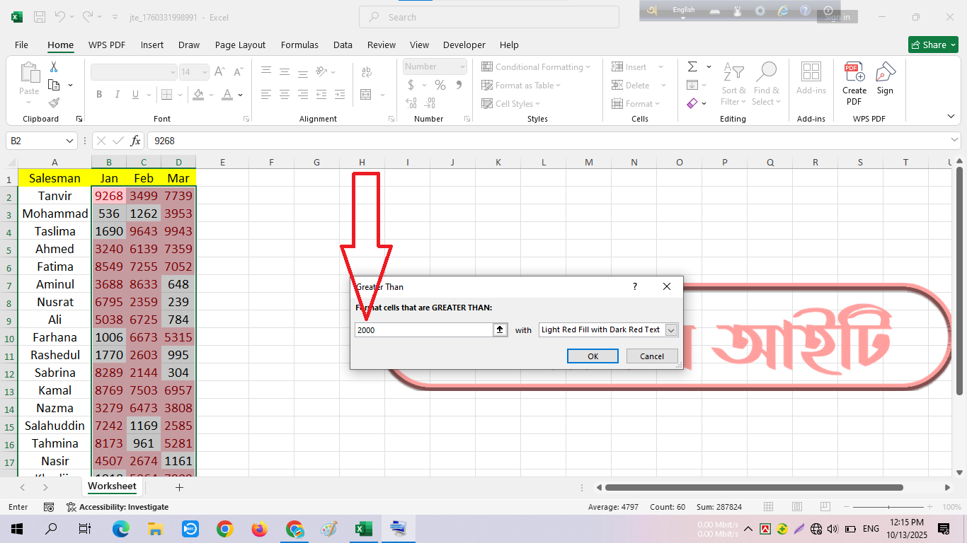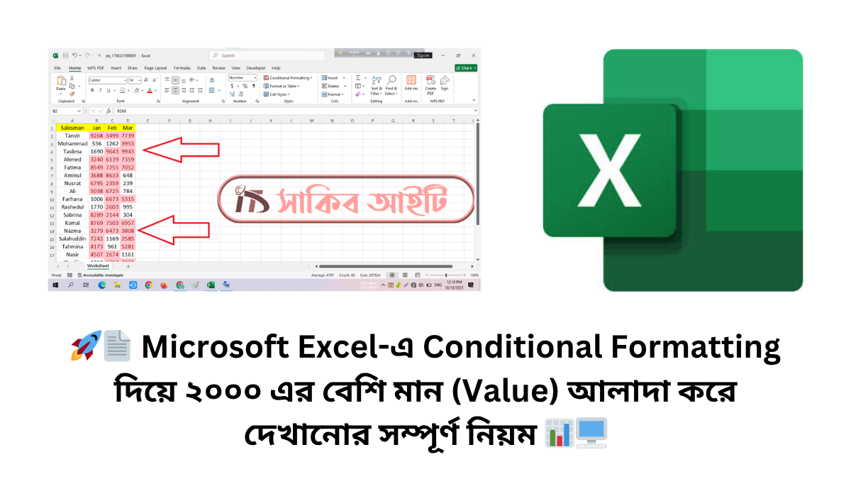đ§Š đ Microsoft Excel-āĻ Conditional Formatting āĻĻāĻŋā§ā§ ⧍ā§Ļā§Ļā§Ļ āĻāϰ āĻŦā§āĻļāĻŋ āĻŽāĻžāύ (Value) āĻāϞāĻžāĻĻāĻž āĻāϰ⧠āĻĻā§āĻāĻžāύā§āϰ āϏāĻŽā§āĻĒā§āϰā§āĻŖ āύāĻŋā§āĻŽ đđĨī¸