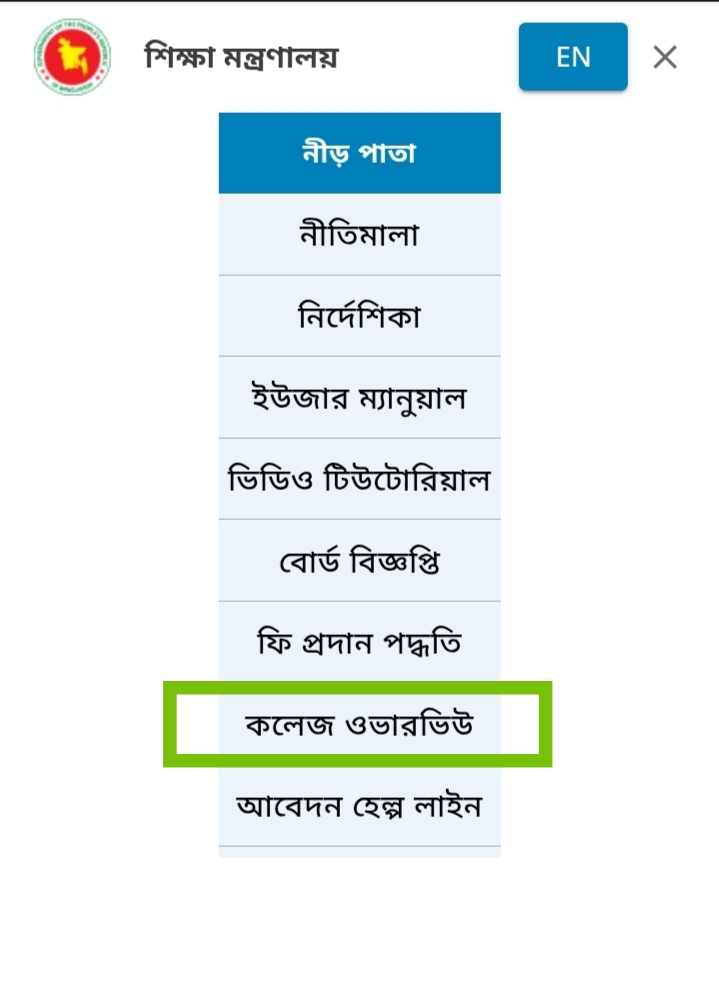 তার পর কলেজ ওভারভিউ তে ক্লিক করুন