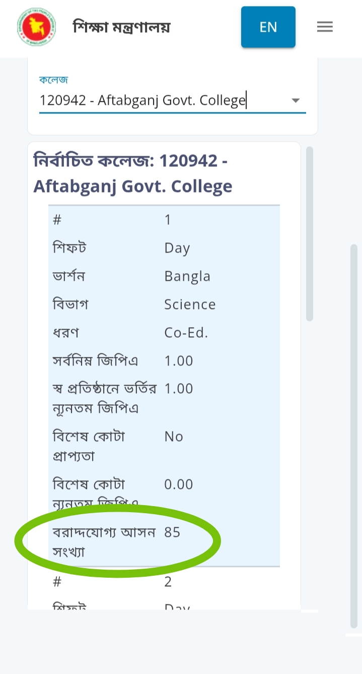 তার পর দেখতে পারবেন আপনার কাঙ্খিত কলেজে কোনো শাখাতে তে কত গুলো সিট ফাকা আছে এখন.!