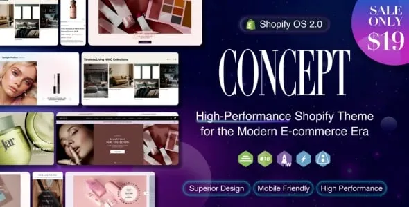 Concept Nulled Sleek, Optimal Shopify Theme OS 2.0 is a sleek and modern Shopify theme built on the powerful OS 2.0 platform, designed to deliver an exceptional eCommerce experience. With its clean, minimalist design and customizable layout, Concept offers a professional foundation for showcasing products across various industries, including fashion, electronics, and lifestyle goods.