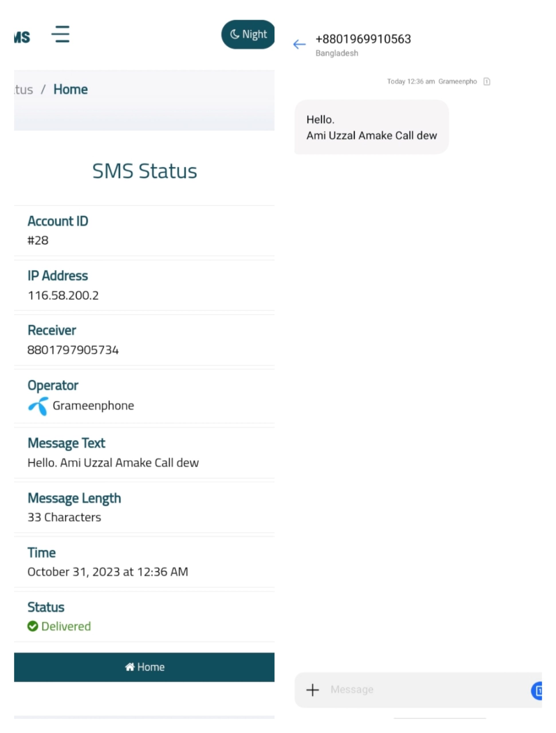 তার পর এসএমএস টি অল্প কিছুক্ষণ এর মধ্যে চলে যাবে সেই নম্বর এ.!
