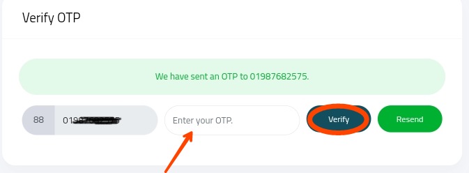 তার পর আপনার ফোন নাম্বার একটি OTP যাবে তা এখানে প্রদান করে Verify তে ক্লিক করেন.!