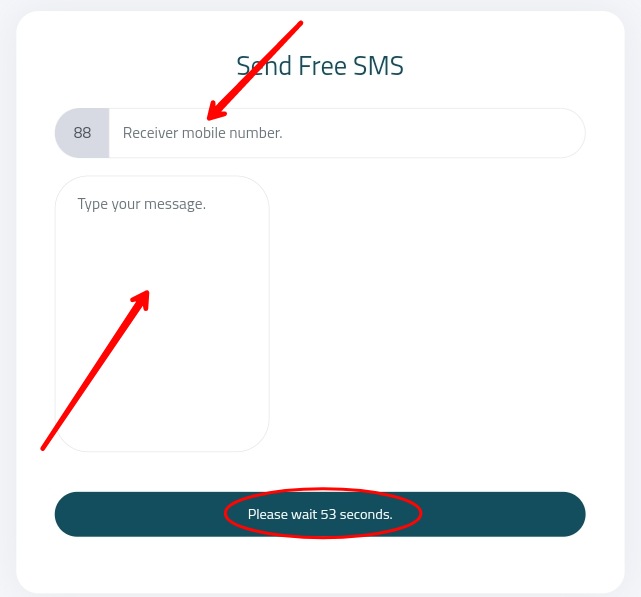 তার পর আপনি যে নম্বর এ এসএমএস পাঠাতে চান সে নাম্বার প্রদান করে নিচের box কি এসএমএস পাঠাতে চান তা লিখেন এবং নিচে ৬০ সেকেন্ড মাইনাস হতে থাকবে ৬০ সেকেন্ড হয়ে গেলে Sent অপশন আসবে তা তে ক্লিক করবেন