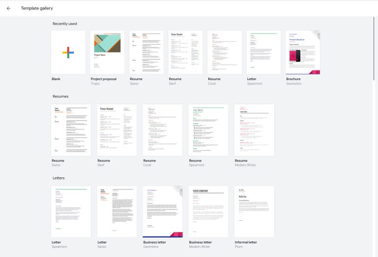 গুগল ডকসে অনেক প্রি-ডিজাইন করা টেমপ্লেট আছে। রেজুমে, রিপোর্ট বা চিঠি লেখার জন্য আলাদা আলাদা টেমপ্লেট ব্যবহার করতে পারেন।