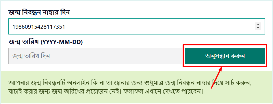 জন্ম নিবন্ধন নাম্বার দিয়ে যাচাই করার ধাপসমূহ