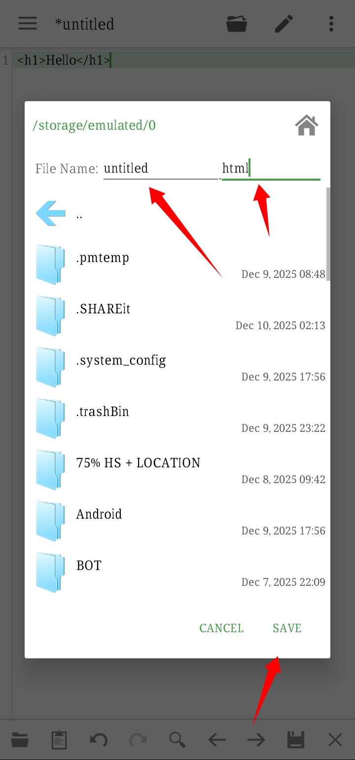 Html নতুন করে লিখলে প্রথমে Save করতে হবে! শুধু Html না যেকোনো Format এ সেভ করতে পারবেন!