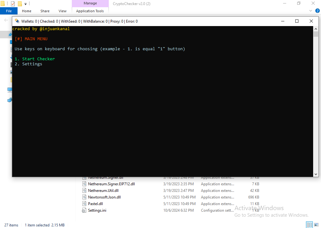 তারপর CryptoChecker v2.0.exe এ ক্লিক করে রান করতে হবে। সফটওয়ার ইন্টারফেস এ ২টি অপশন দেখা যাবে main page এ। প্রথমে Settings option “2” click করতে হবে।