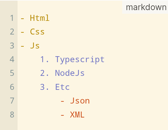 লিস্ট এর আন্ডারে আরো লিস্ট বানাতে লিস্ট বানাতে চাইলে চারটা স্পেস এর পরে করতে পারেন। নিচের উদাহরণ দেখুন: