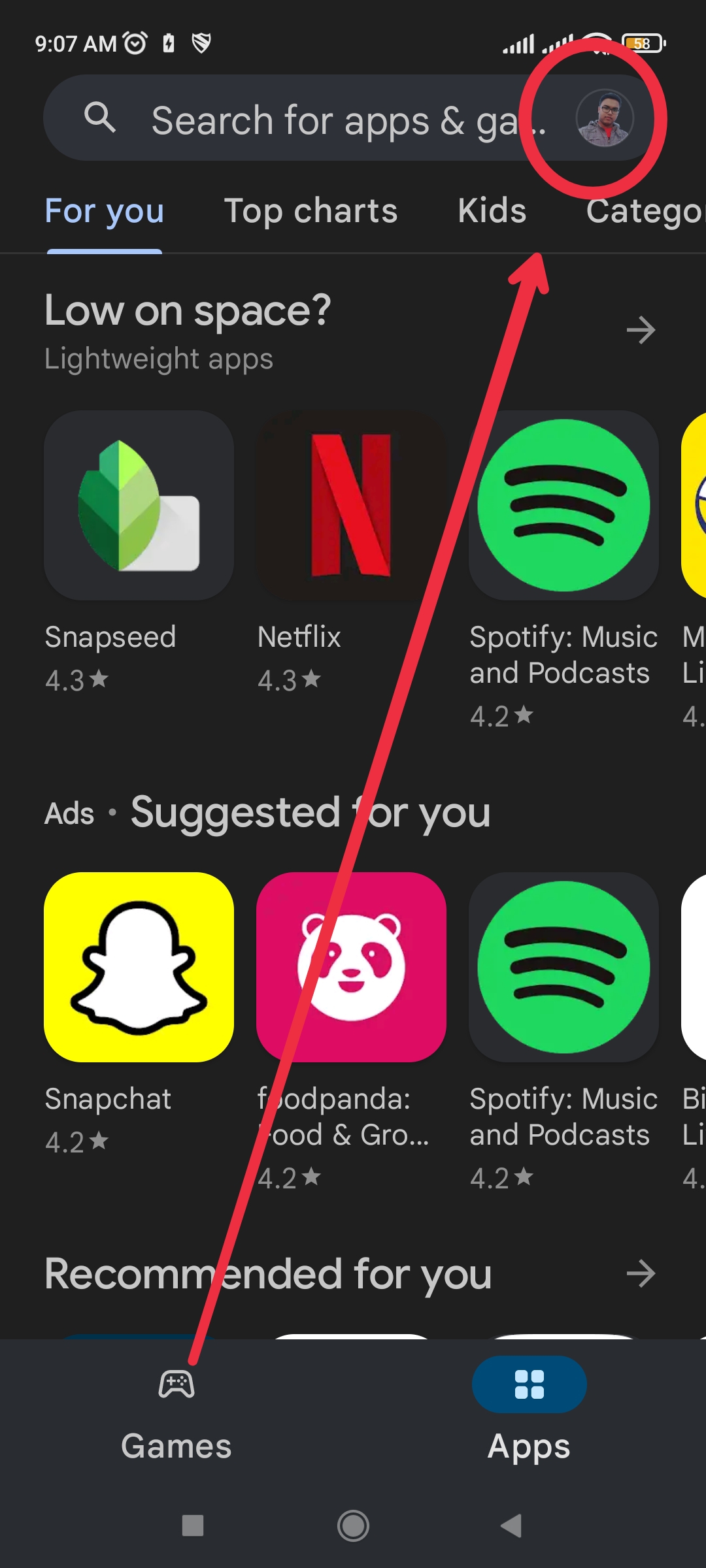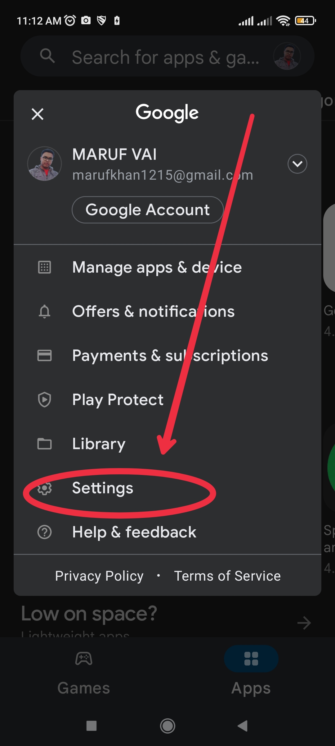 সেটিং গুলো রয়েছে আমাদের ফোনের কয়েকটা অ্যাপস এর ভিতর প্রথমে যেই সেটিং গুলো দেখব সেগুলো রয়েছে প্লে স্টোরে। সকলে প্লে স্টোরে ঢুকুন। ঢুকে নীচের দেখানো অংশে ক্লিক করুণ।