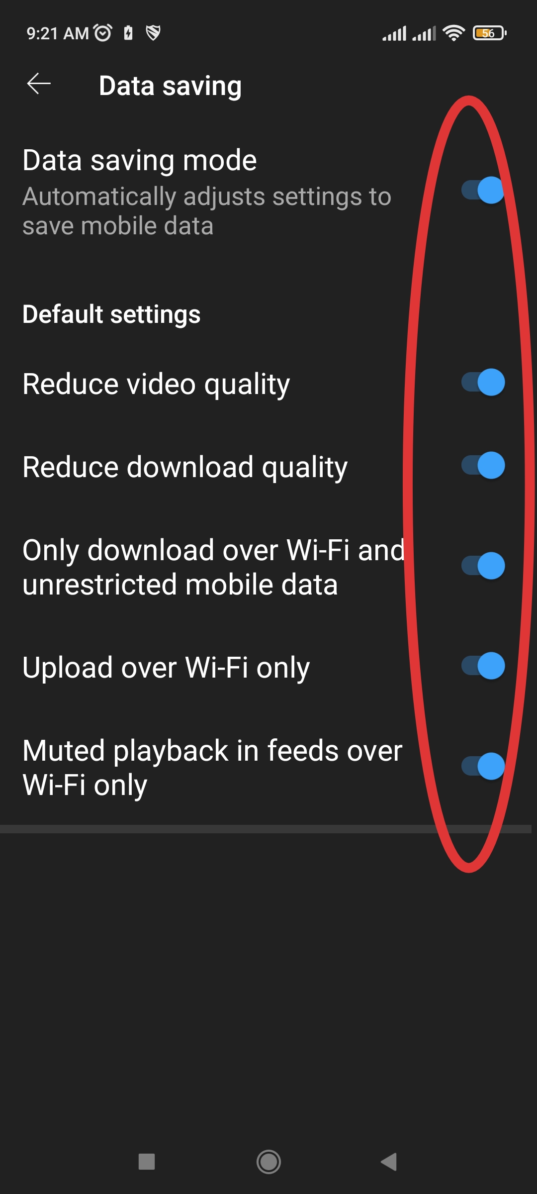 ডাটা সেভিং মোড কে এনাবল করে দিন। এনাবল করার পর সবগুলো অপশন নিচের মতো অন হয়ে যাবে।