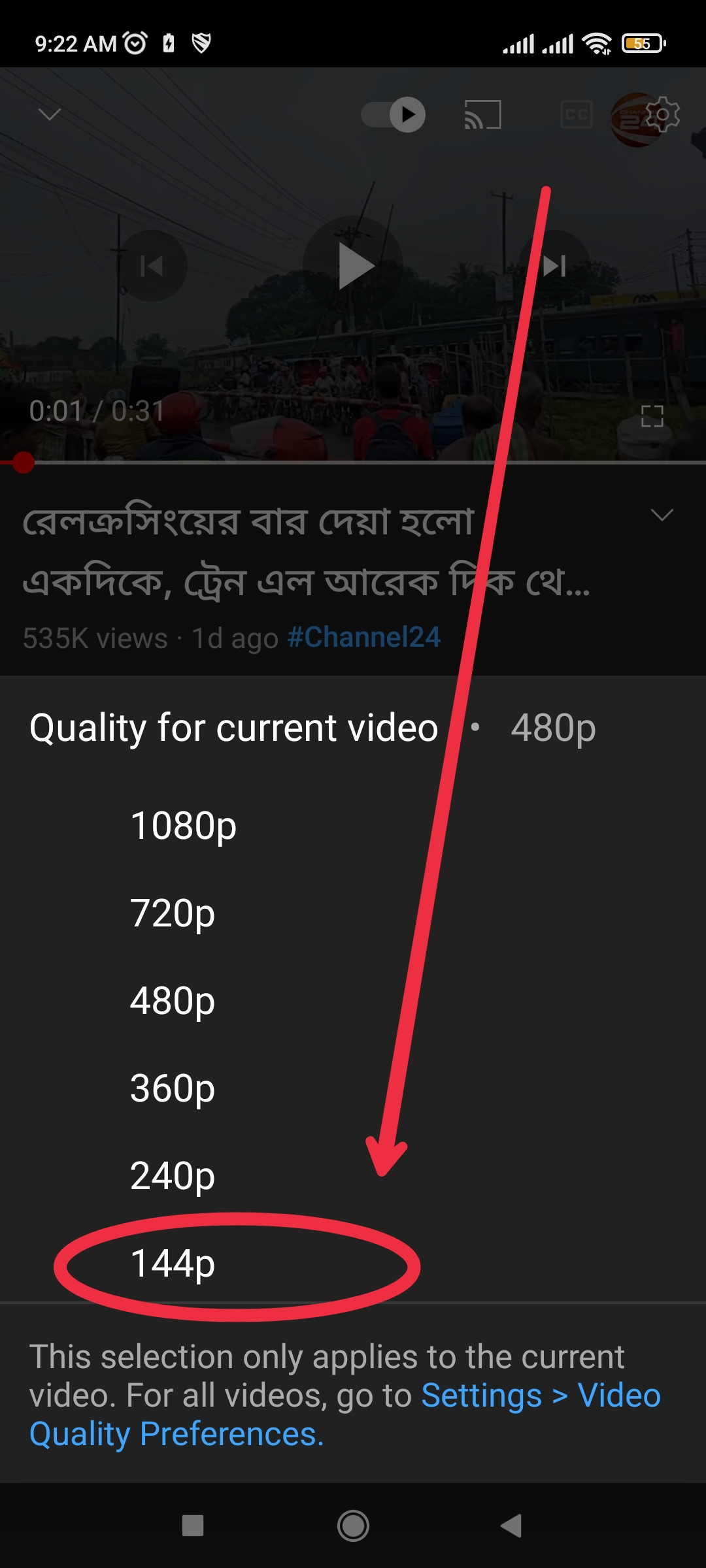 এরপর সবার নিচের অপশন টি ক্লিক করুন। এতে আপনার ভিডিও কোয়ালিটি কিছুটা খারাপ হবে। কিন্ত আপনার এমবি কম খরচ হবে।